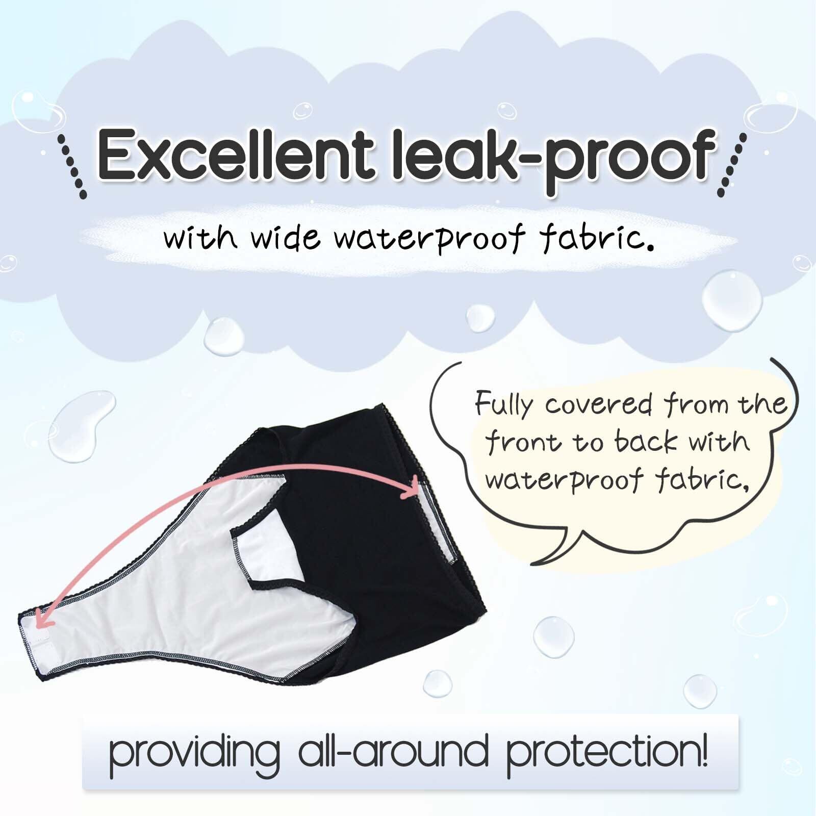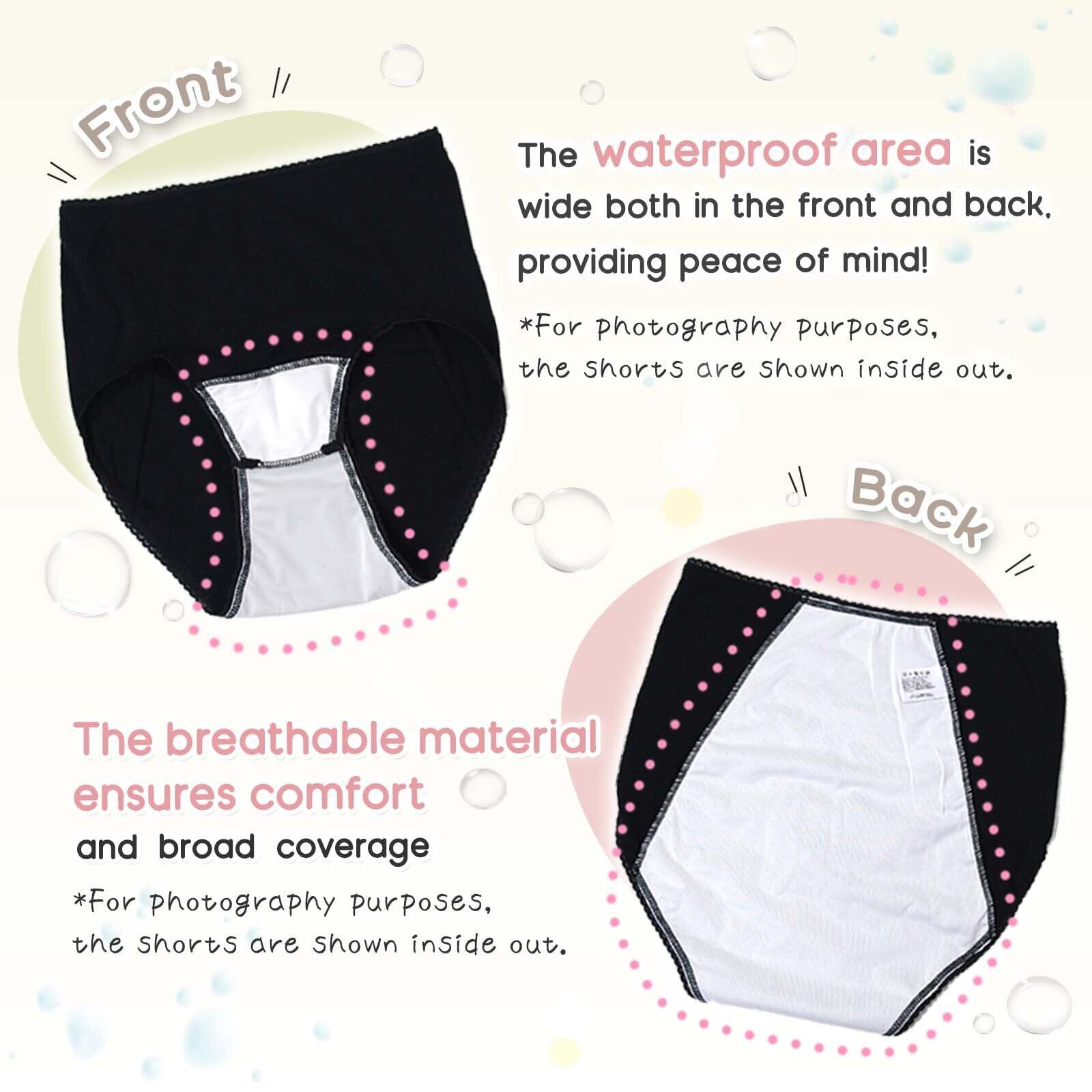 クロッチ部分から腰の後ろまでの広範囲にわたり、防水布でおしりをすっぽり包み込んでしっかりカバー!