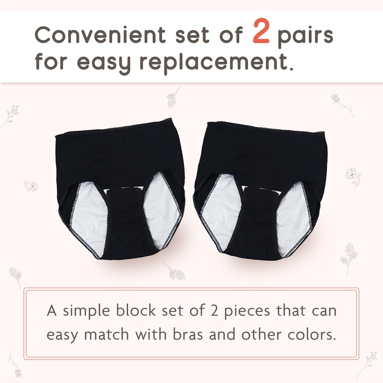 【出産準備の必需品!産褥ショーツ2枚セット】出産、入院準備に欠かせない、産褥ショーツの2枚セットです。どなたでも履きやすいシンプルなデザインです。締めつけ感が無くゆったりとしたシルエットです。