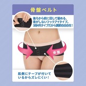 ・1段式でかんたん、サイドに伸縮性のあるクロスベルトを内蔵してるから、ピタッと前で留めるだけで骨盤にフィット! 体調・体型に合わせて自由自在に調節できる!