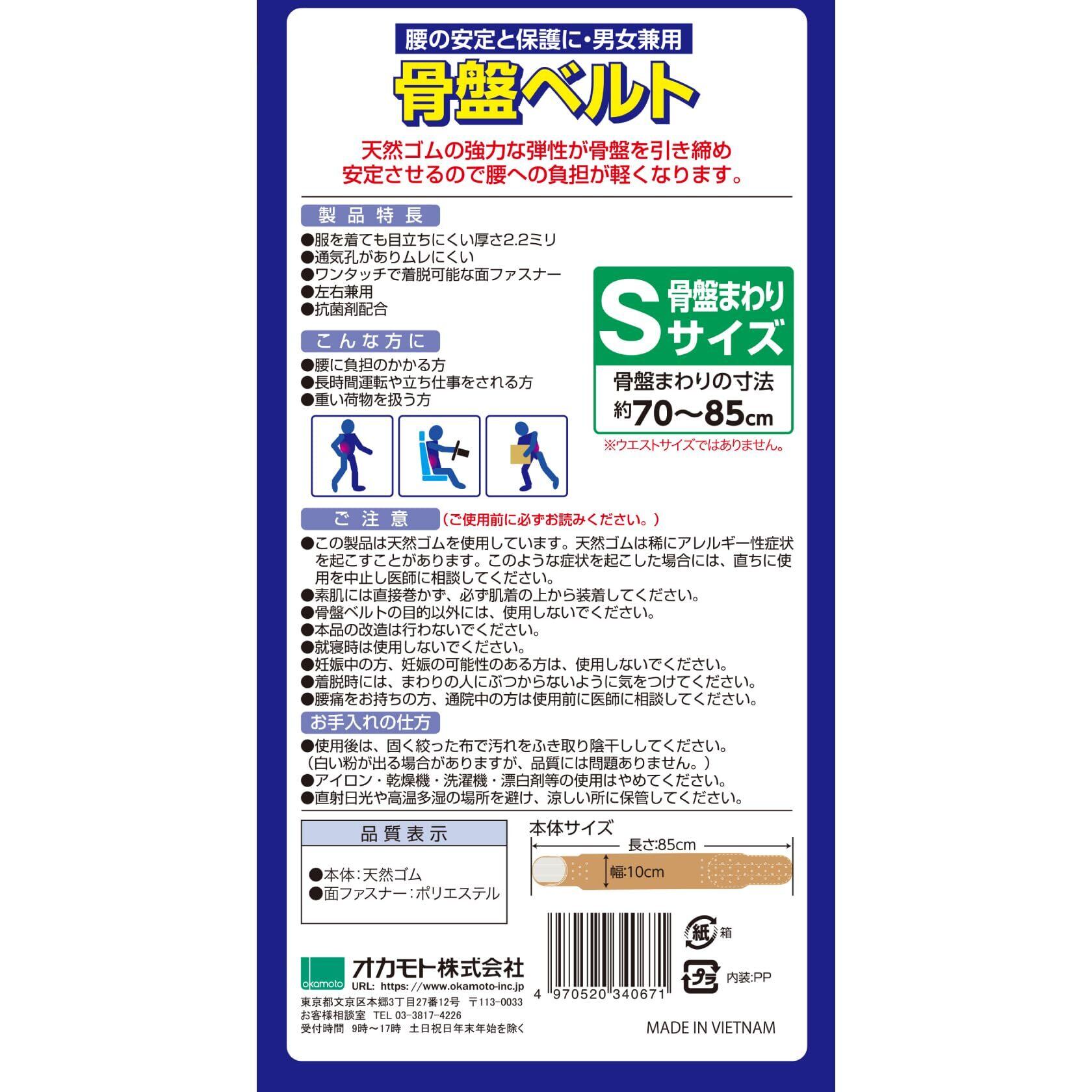 OKAMOTO オカモト 骨盤ベルト Sサイズ (骨盤まわりの寸法70~85cm) 日本製 抗菌剤配合 男女兼用