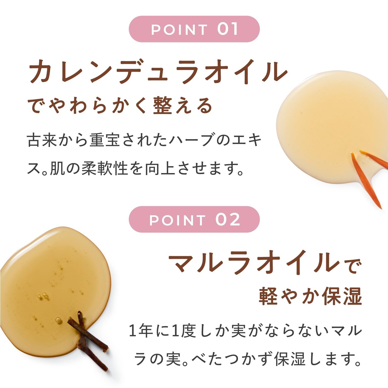 こだわりぬいた成分妊娠中はホルモン変化で肌が超敏感に。動物由来成分ゼロで、肌をいたわります。ヴィーガン原料であるカレンデュラオイルで肌の柔軟性を向上させ、マルラオイルでべたつきすぎず、軽やかな保湿を。