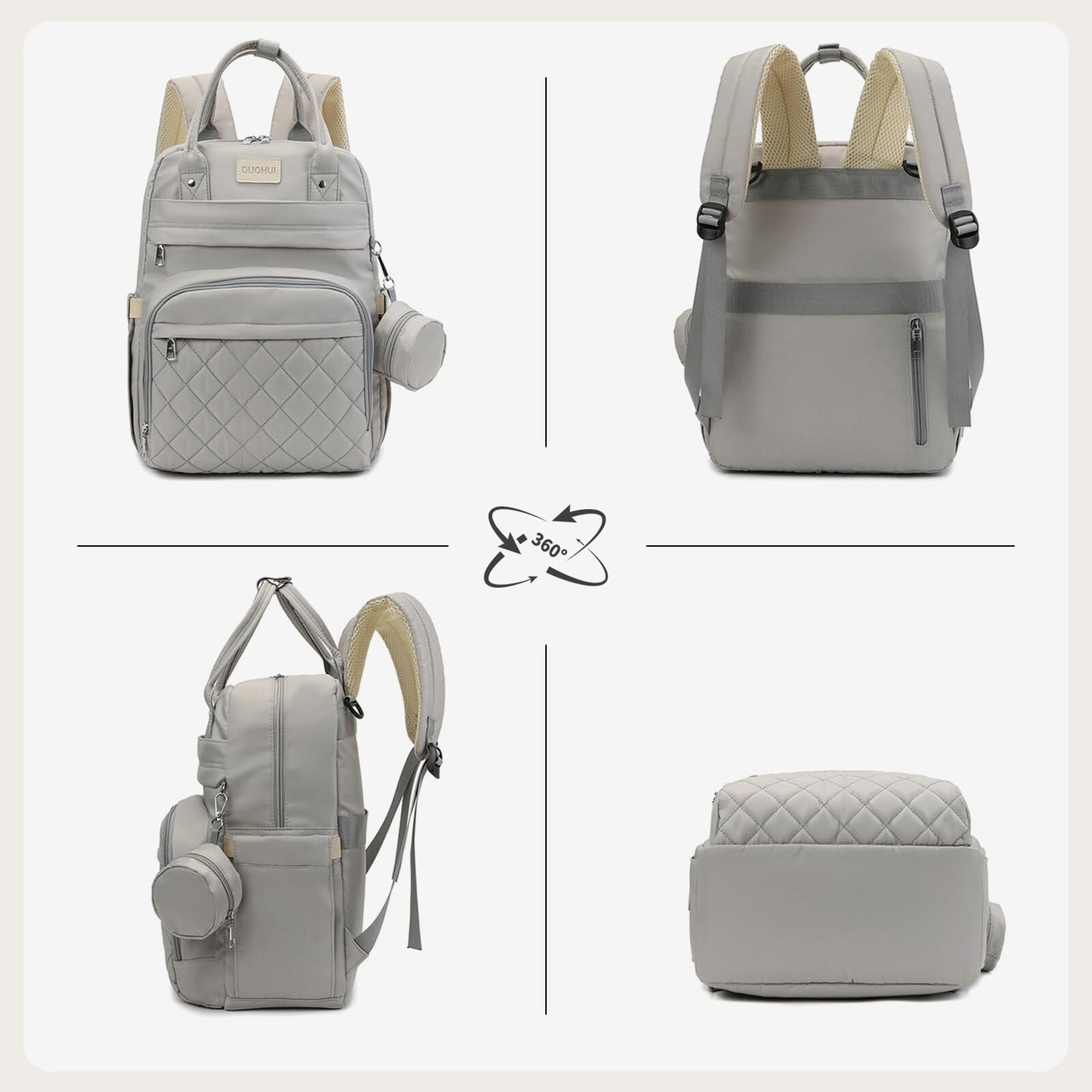 ダイヤ柄を使用され、上品でスタイリッシュな感じが出す、子連れのママ・パパに対して最適なバッグです。リュックなので、両手が動きやすい、別の荷物を持ちたいときや、活発に動く子どもを世話するときや、子ども2人以上いるときや、色んなシーンに対応できます。