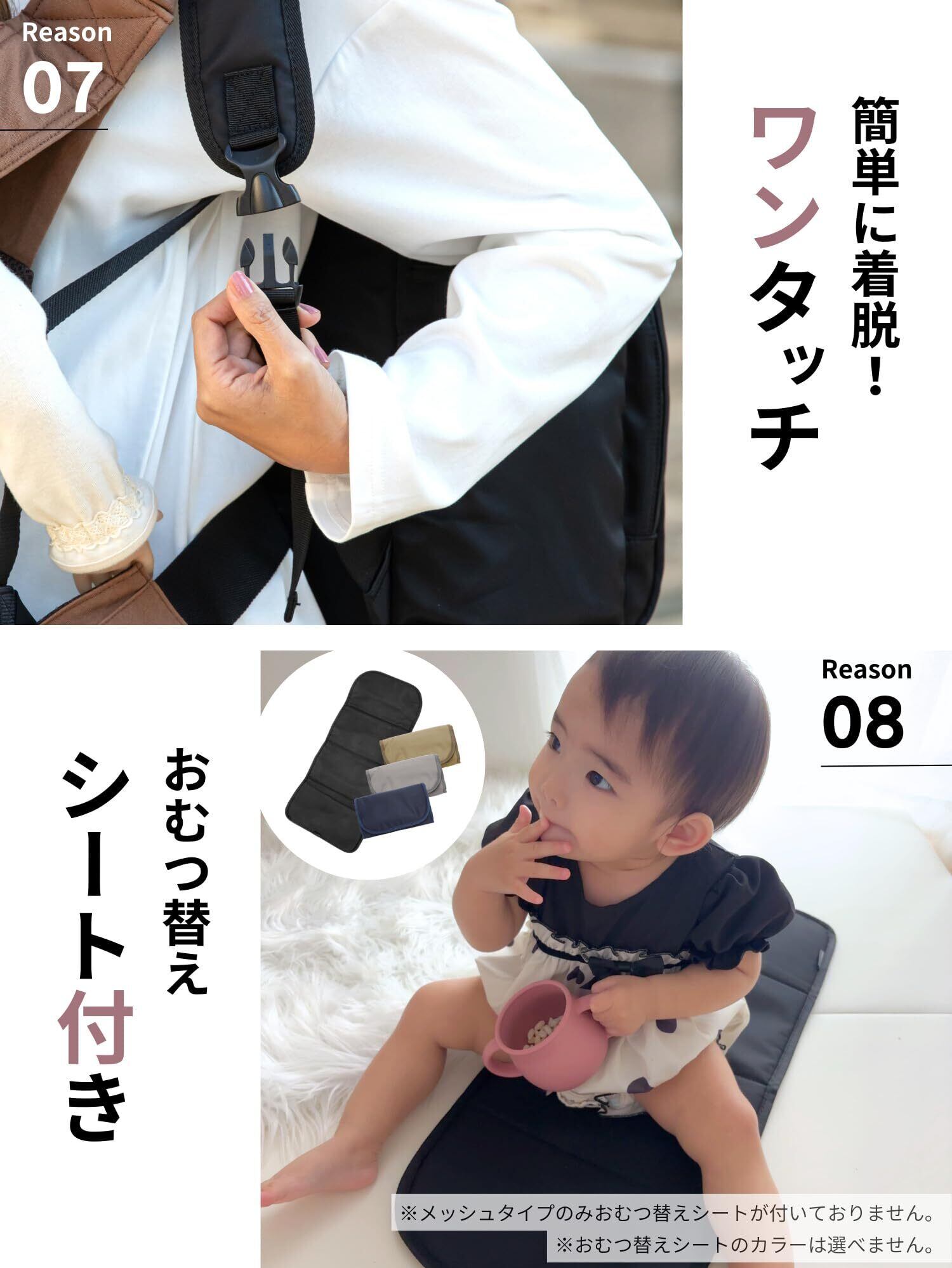 ・抱っこ紐をしたまま、バックルを外すだけでリュックがおろせる簡単ワンタッチ!