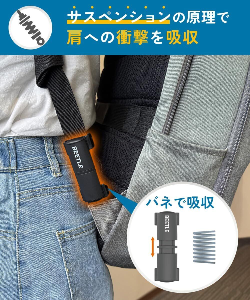 【在庫セール】[FlukeForest] フルークフォレスト リュックのサスペンション 肩への衝撃をバネで吸収 肩凝り 通勤 通学 肩が痛い 荷物が重い FF-BEETLE10
