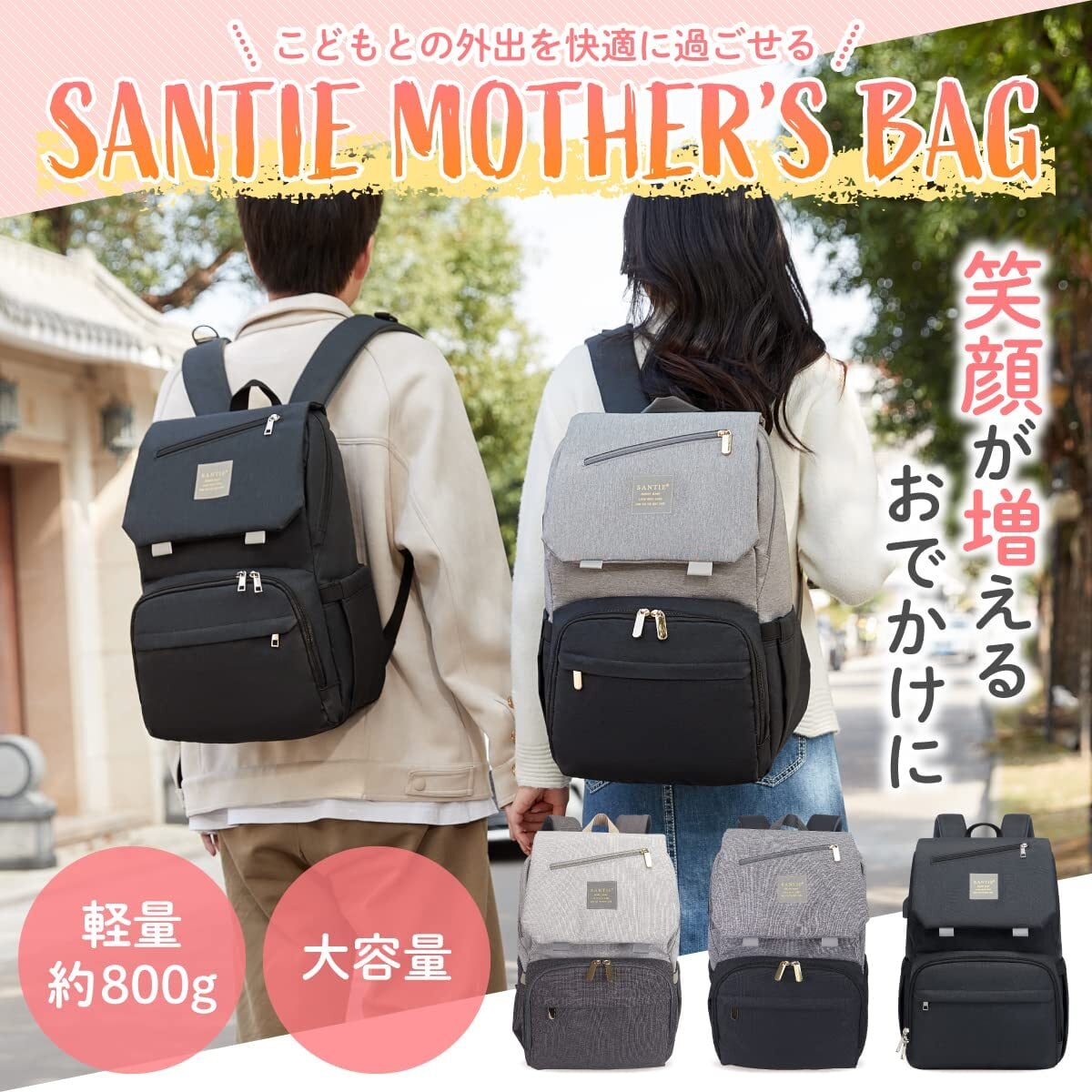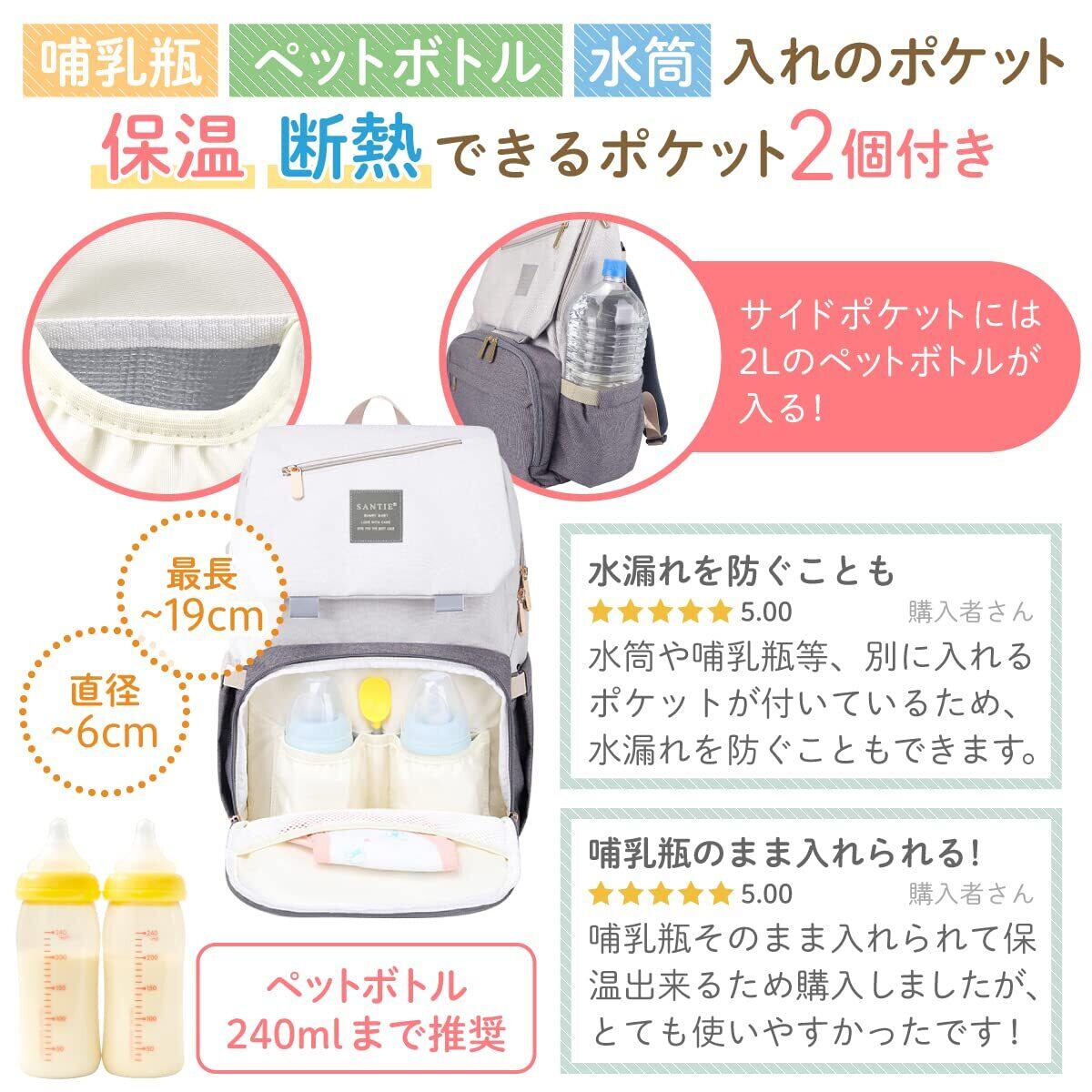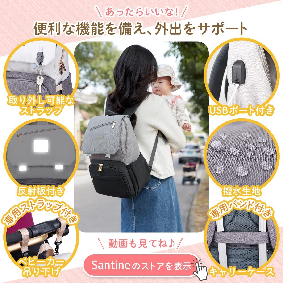 【新着商品】[Santie] 2025最新型 マザーズリュック 大容量 16のポケット 軽量 ママ バッグ 多機能 出産祝い 外出が快適になる リュック