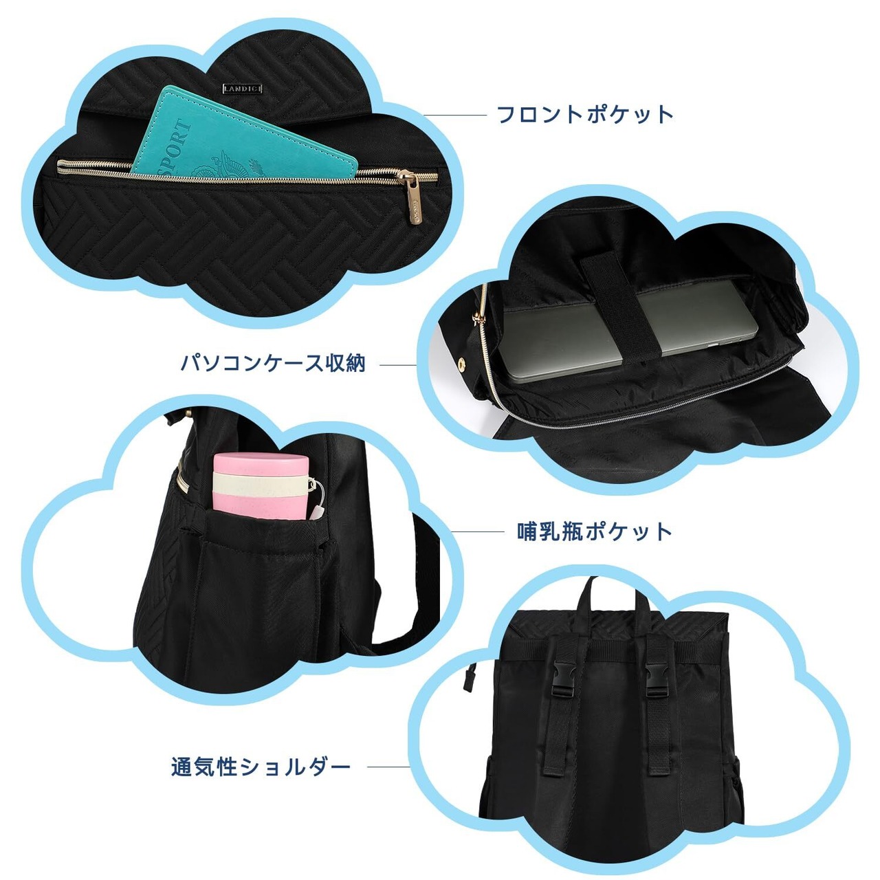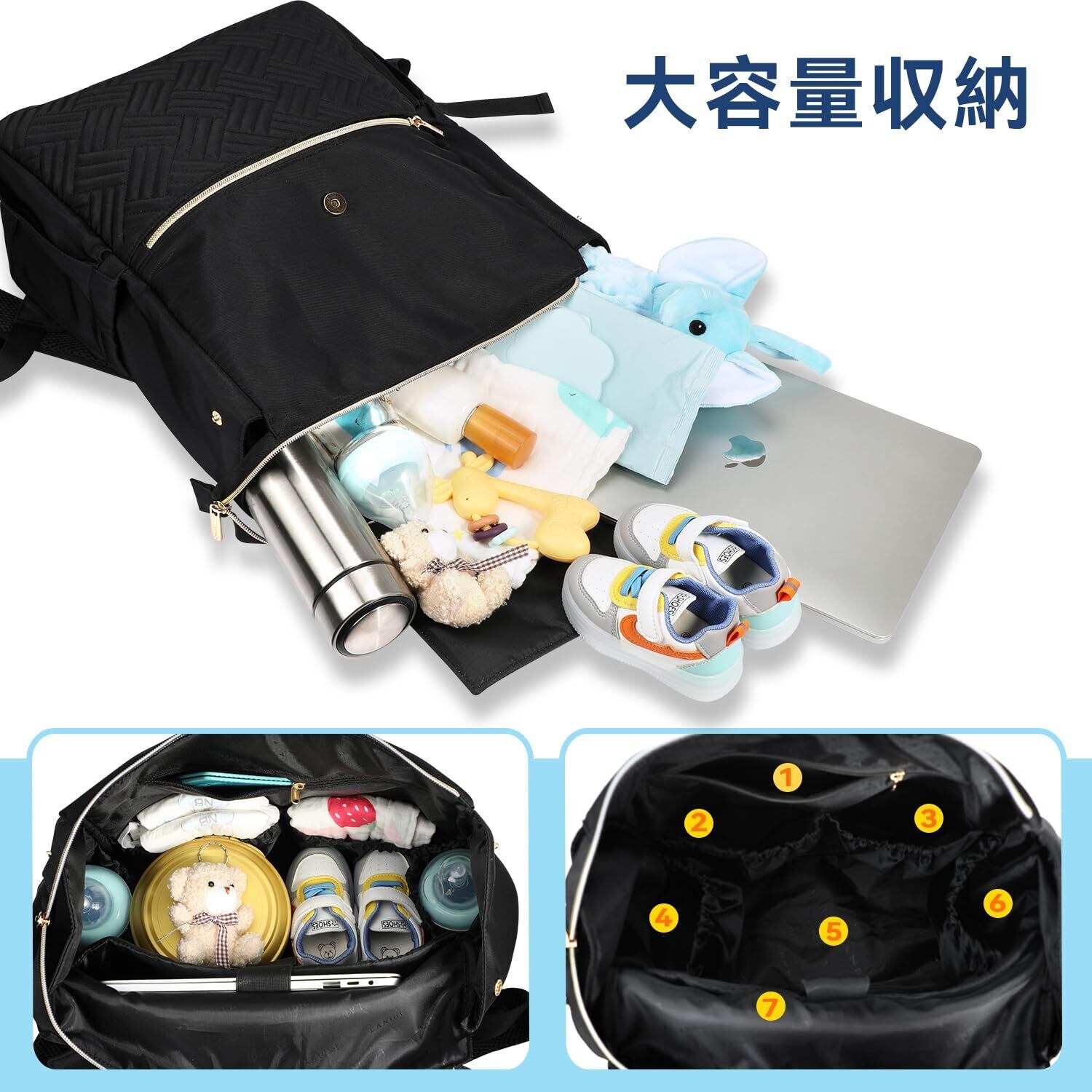 [LANDICI]マザーズリュック レディース マザーズバッグ 大容量 軽量 多機能マザーズバッグ リュック 防水ママバッグ オムツ替えシート付き 哺乳瓶収納 ベビー用品 多ポケット収納 おしゃれ 通勤 旅行 子連れ 出産祝い プレゼント (ブラック)