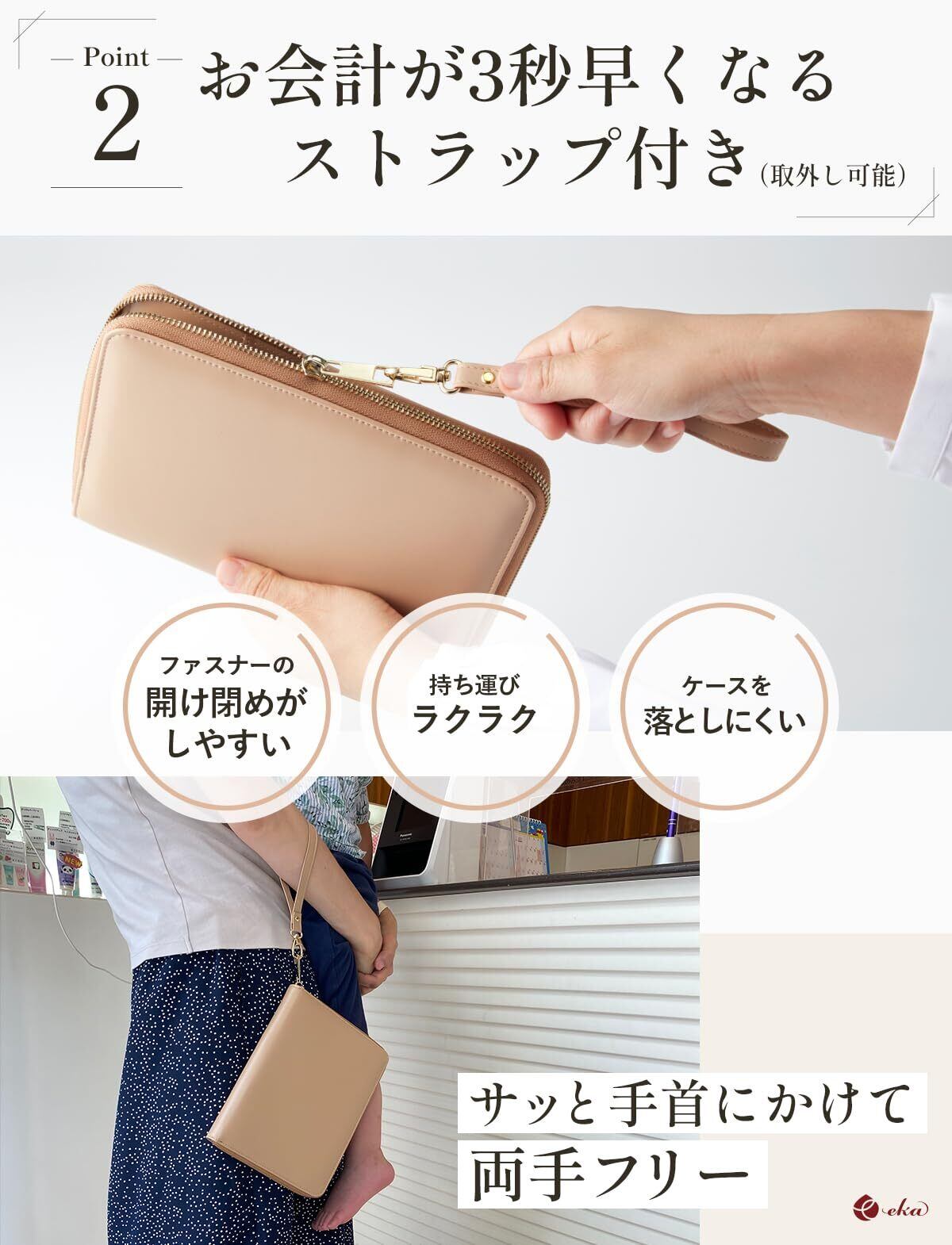 【人気商品】[eka] 母子手帳ケース おくすり手帳ケース 【大容量xストラップ付き】 マルチケース (エクルベージュ)