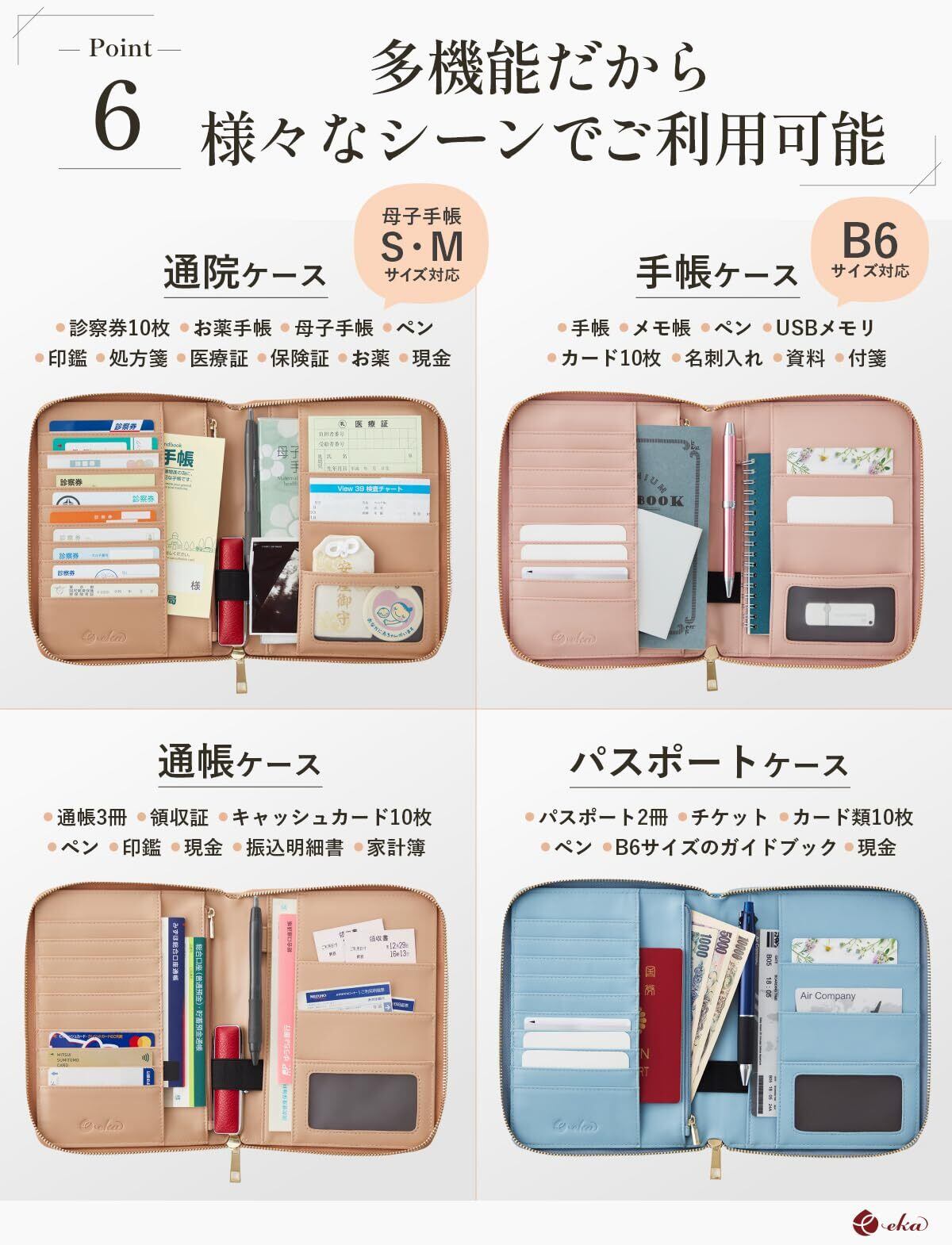 マルチケース 【必要な物がこれ一つにまとまる】 多機能だから、 通帳ケース 、 手帳ケース 、 通院ケース 、 通院ウォレット 、 パスポートケース など、様々なシーンでご利用いただけます。