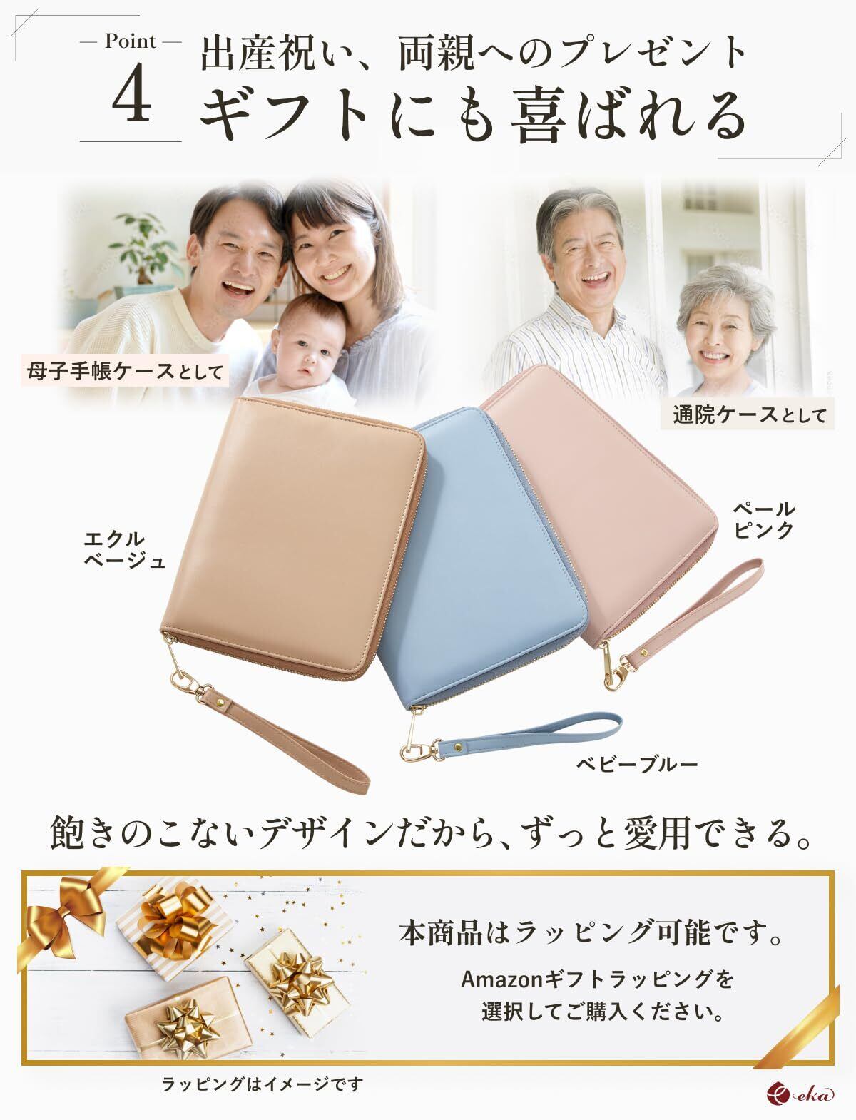[eka] 母子手帳ケース おくすり手帳ケース 【大容量xストラップ付き】 マルチケース (エクルベージュ)