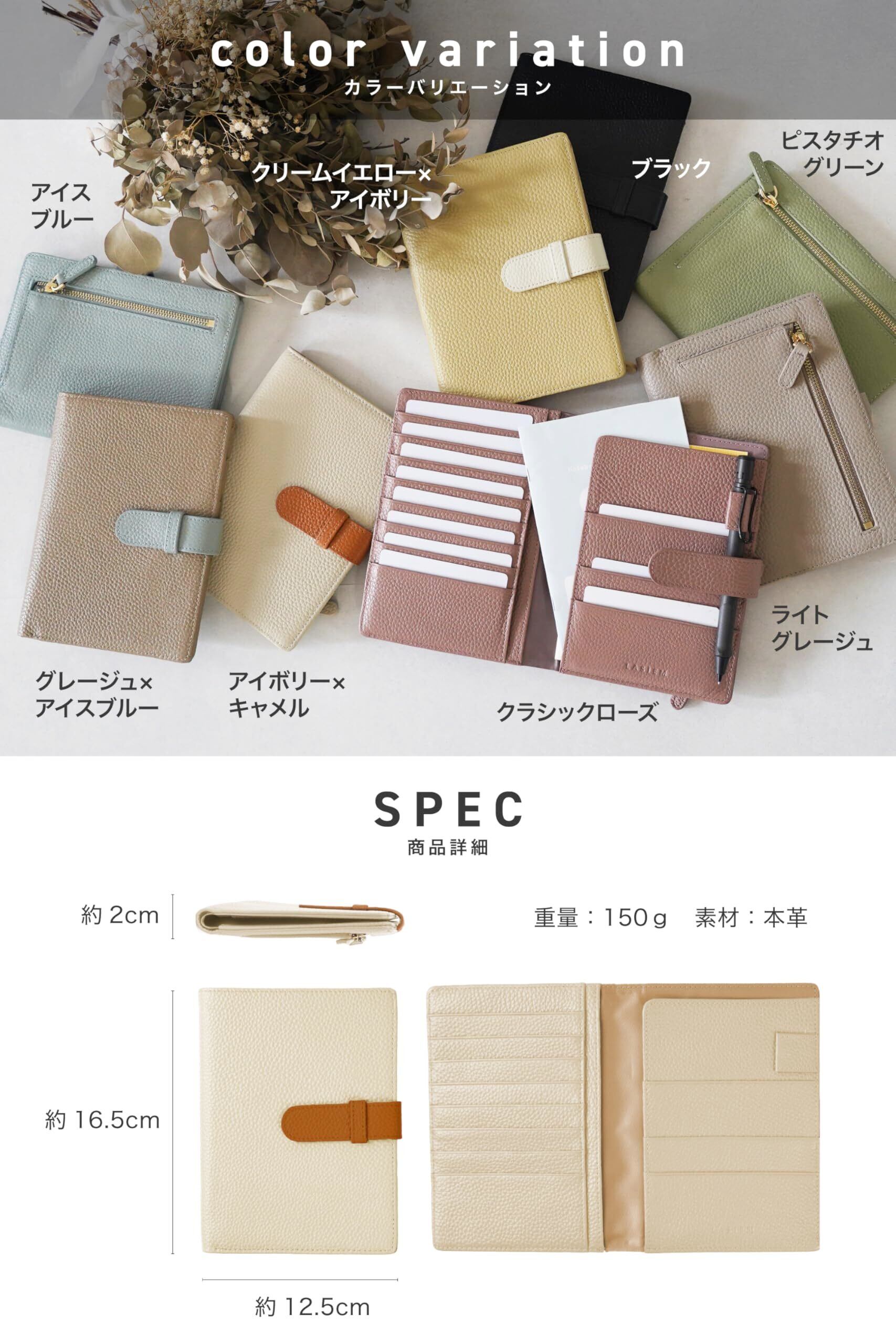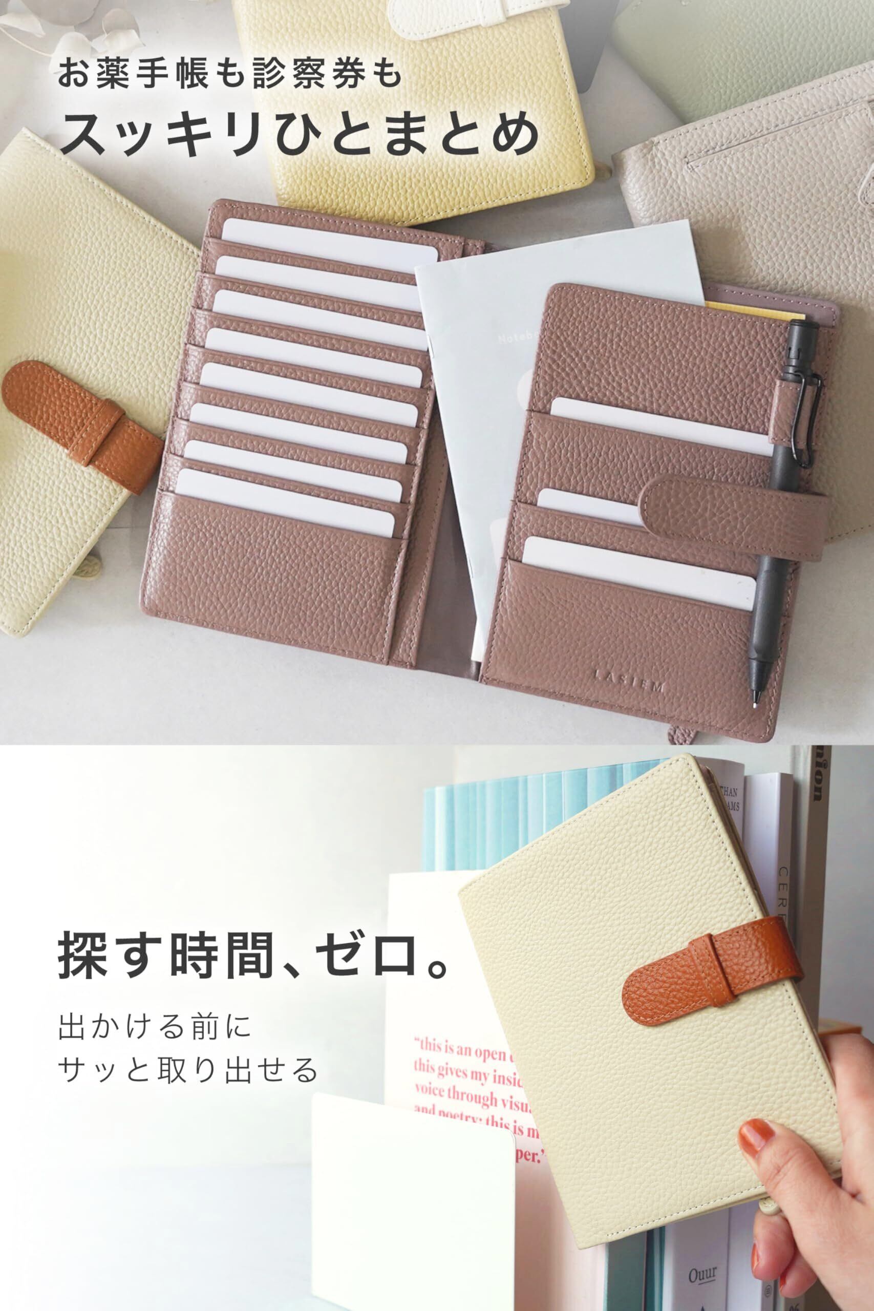 LASIEM(ラシエム) お薬手帳ケース 母子手帳ケース カードケース パスポートケース 通院ケース 「本革」 診察券入れ マルチケース (ライトグレージュ)