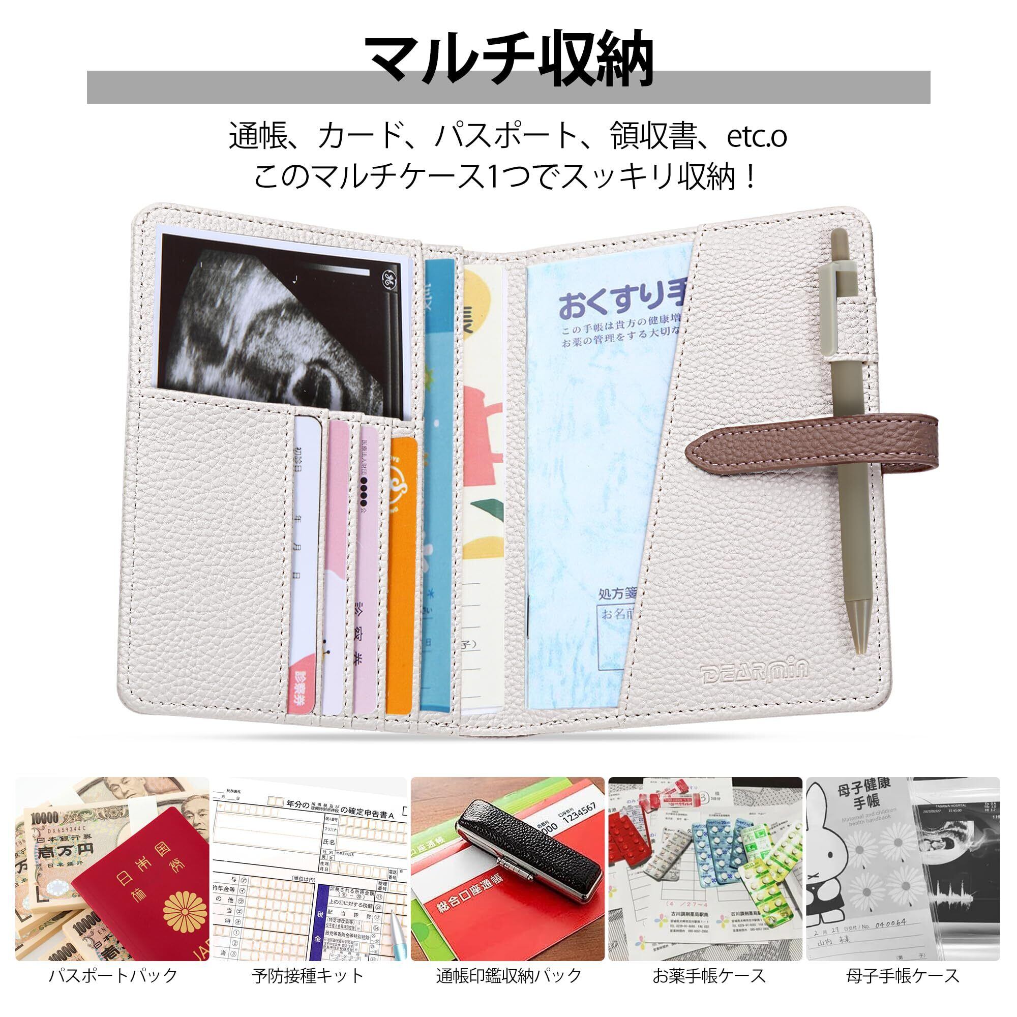 【新着商品】[DearMin] お薬手帳ケース 薄型 超軽量 母子手帳ケース 大容量 多収納 通院ウォレット マルチケース ペンホルダー付 札入れ 小銭入れ W13×H16.8×D1.5cm 保険証・通帳・診察券・キャッシュカード等をまとめるのに便利なケース
