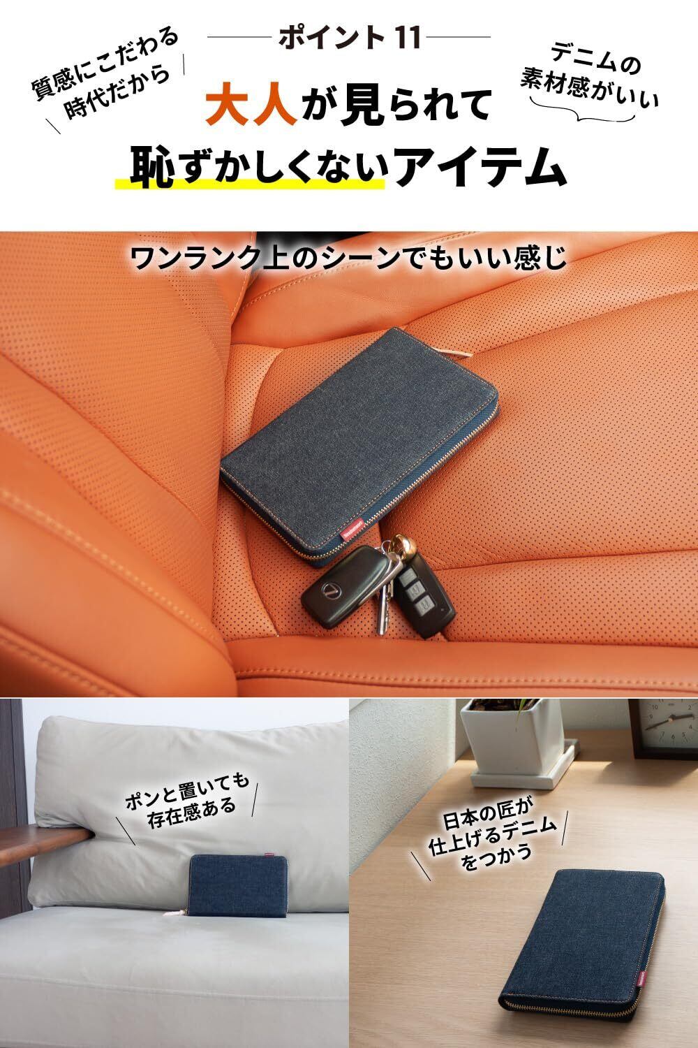 この製作企画は、デニムの魅力を味わっていただきたくてスタート。当デザイナーが生地選びのため、伝統を受け継ぐ瀬戸内のデニム産業地域に何度も足を運び、厳選した生地。使うほどに味わいが増し、デニムの魅力にハマる。職人の情熱とブレないモノづくりの姿勢が、長年にわたって多くの人を魅了し続けているデニムをどうぞ。