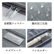外側にもオープンポケットとファスナー付きポケットがあり、収納に困りません。