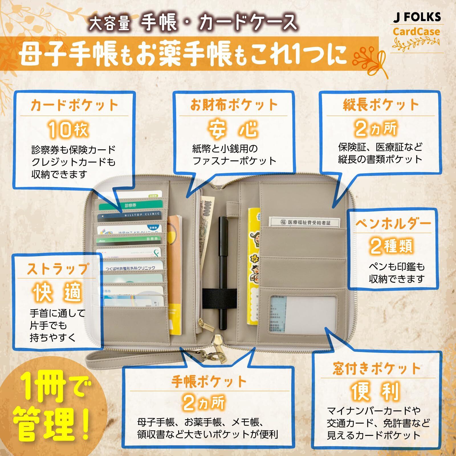 [JFOLKS] 母子手帳ケース お薬手帳 ・ 診察券 ・ 保険証 も すっきり収納 | 大容量 スリム設計 ・ ラウンドファスナー で 中身が落ちない 軽量 & おしゃれ 5カラー ライトグレー