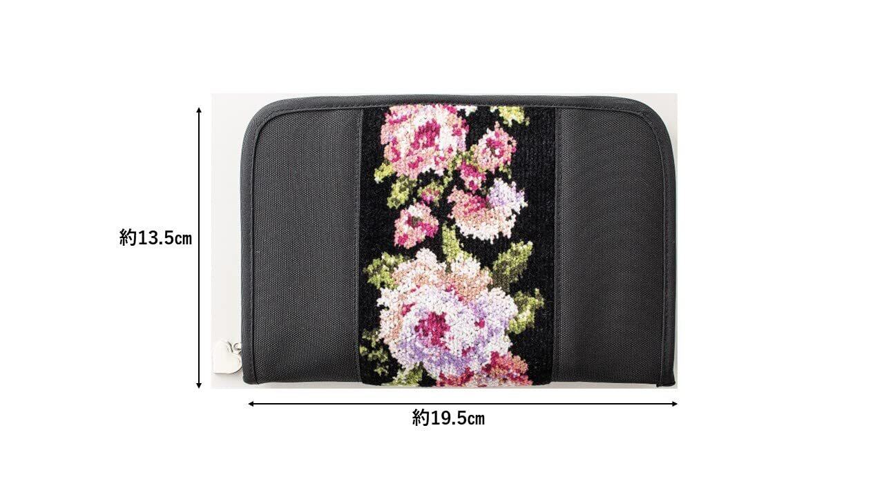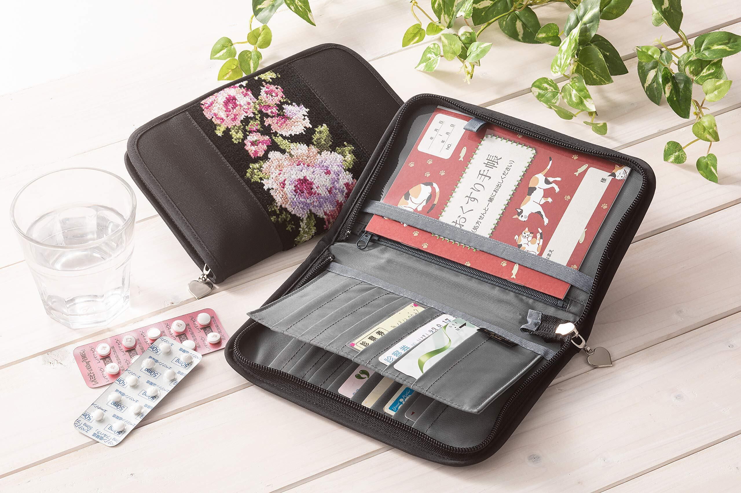 [f.you] お薬手帳ケース カバー バラ 日本製 大容量 カード20枚収納 シェニール織 母子手帳ケース 診察券 保険証
