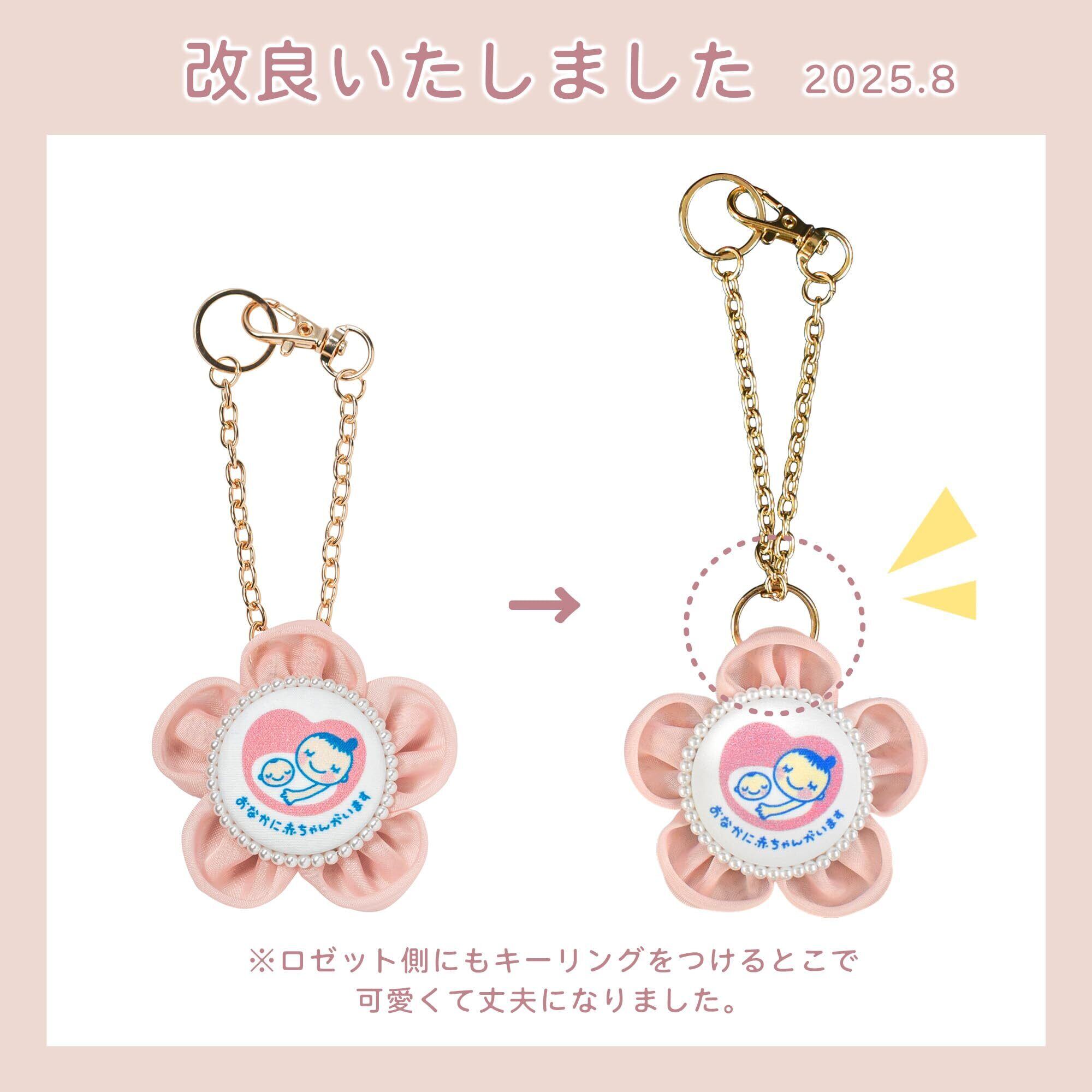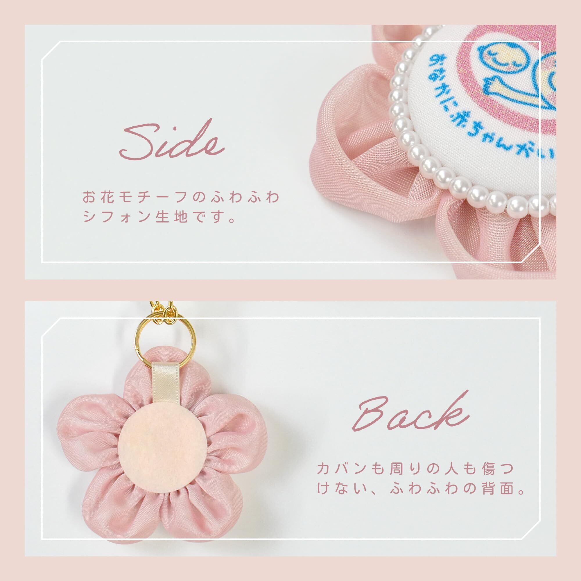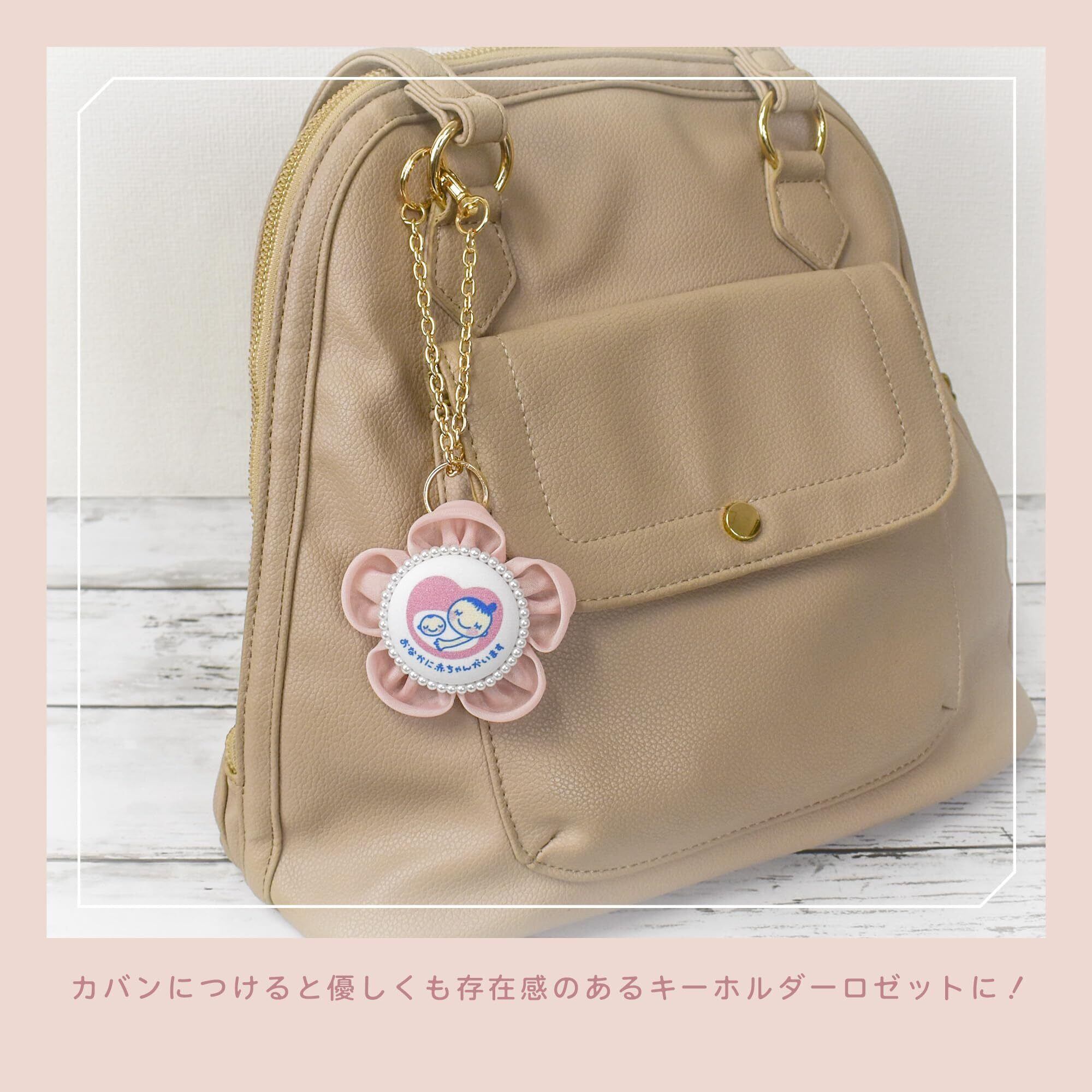 cocomam マタニティロゼット フラワーシフォンキーホルダー お花が可愛い ママになるみなさまへ ギフト プレゼント お祝い ベビー 日本製 マタニティマーク (パールピンク)