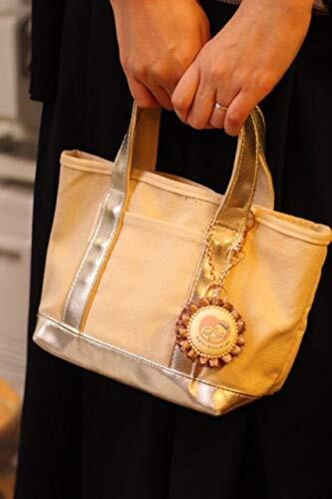 落ち着いたゴールドのチャームで、どんなバッグにも合う