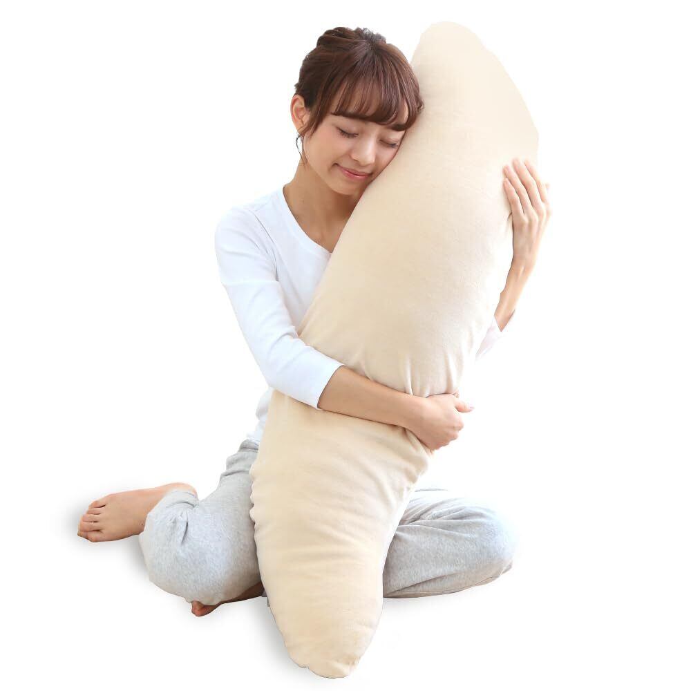 【人気商品】アイリスプラザ 抱き枕 日本製 綿100%カバー さらふわ ボリューム感 選べる6色 クッション 横向き寝 膝枕 脚枕 洗濯可 おうち時間 ベージュ