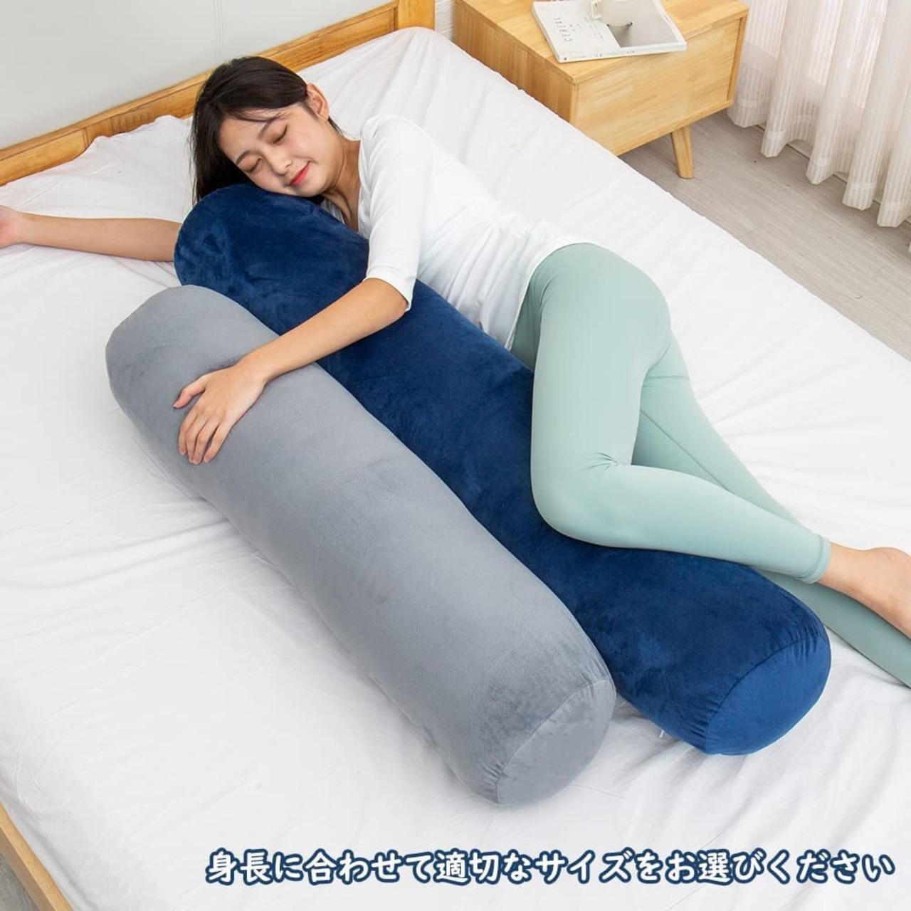 【幅広いシーンで活躍】最もシンプルな円筒抱き枕、ストレートな形状で扱いやすく、睡眠枕としてはもちろん、ごろ寝用の枕として、また足浮腫み安い妊婦さんの足枕にするなど、オールラウンドに活用できます。