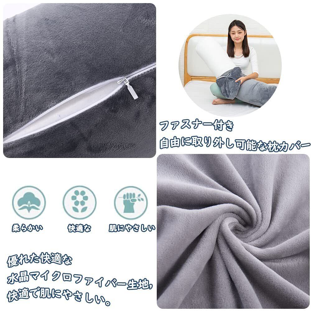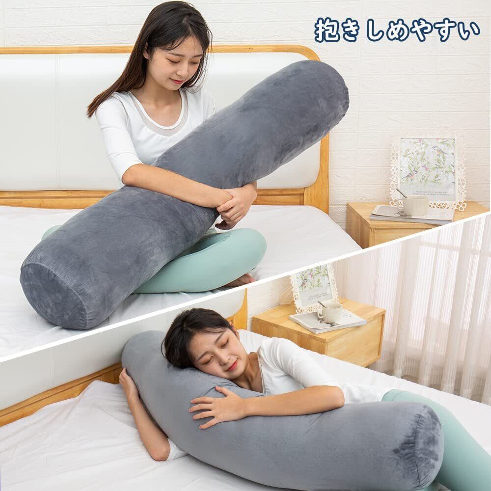 Magic Elephant 抱き枕 円筒型 120X20cm本体 ホテルロングクッション 男女兼用 横向き寝妊婦 人気プレゼントラグジュアリー感 ぬいぐるみ ふわふわ 体にフィット ヘタリにくいボディーピロ ハグーピロ 取り外しカバー付き(グレー)