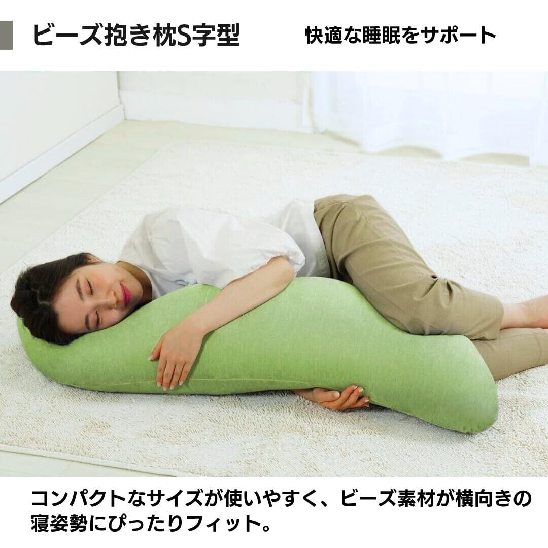 横向きの寝姿勢にしっかりフィット 寝姿勢安定させるS型形状の抱き枕です。抱きかかえて眠ることでリラックスし心地良い睡眠でストレスを解消できます。お好みによってSの向きを変えてご利用になれます。