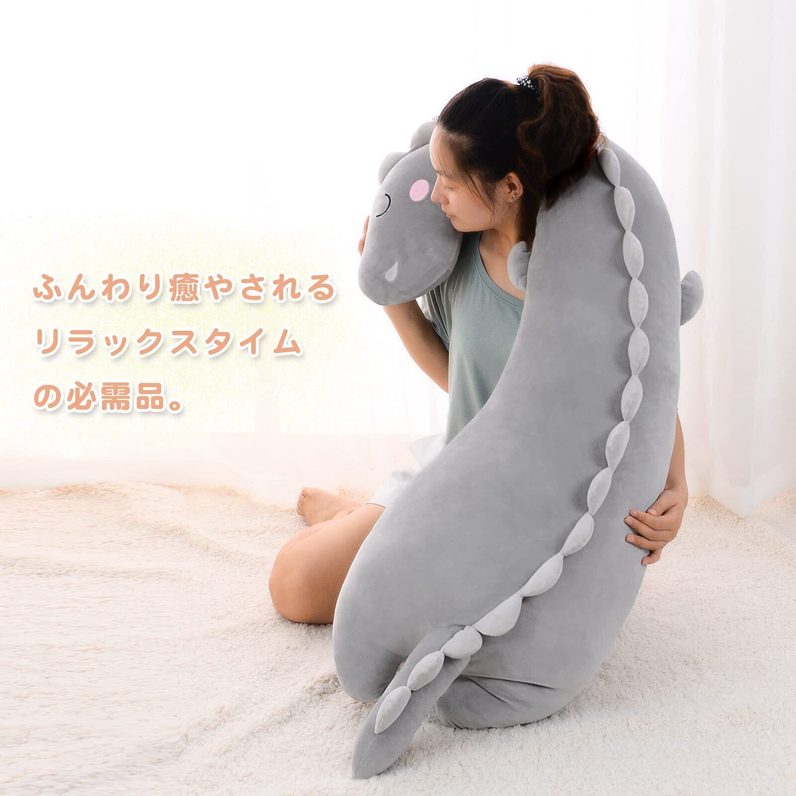 かわいい恐竜デザインに7字型で体にフィットし、ふわふわもちもちで抱き気持ちもいいです。抱きつくと眠りが誘います。抱きついたり肘置きにしてもOK!ゴロゴロのお手伝いをさせて頂きます!頑張る人の、頑張らない時間をご提供いたします。