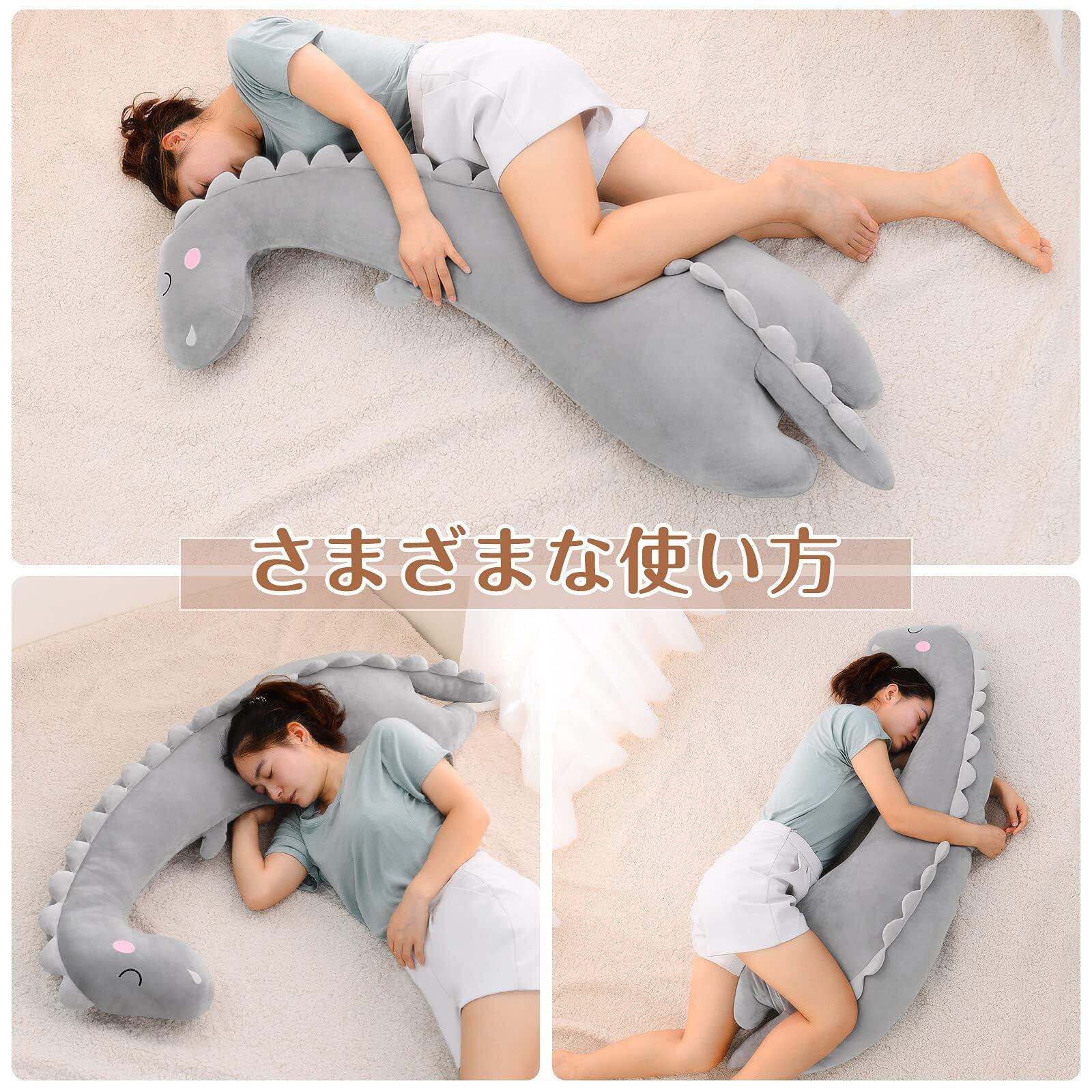 Baibu Home 抱き枕 クッション だきまくら 横向き寝 かわいい 恐竜 ロング クッション 120cm カバー洗える 妊婦 7字 抱きまくら 動物 気持ちいい