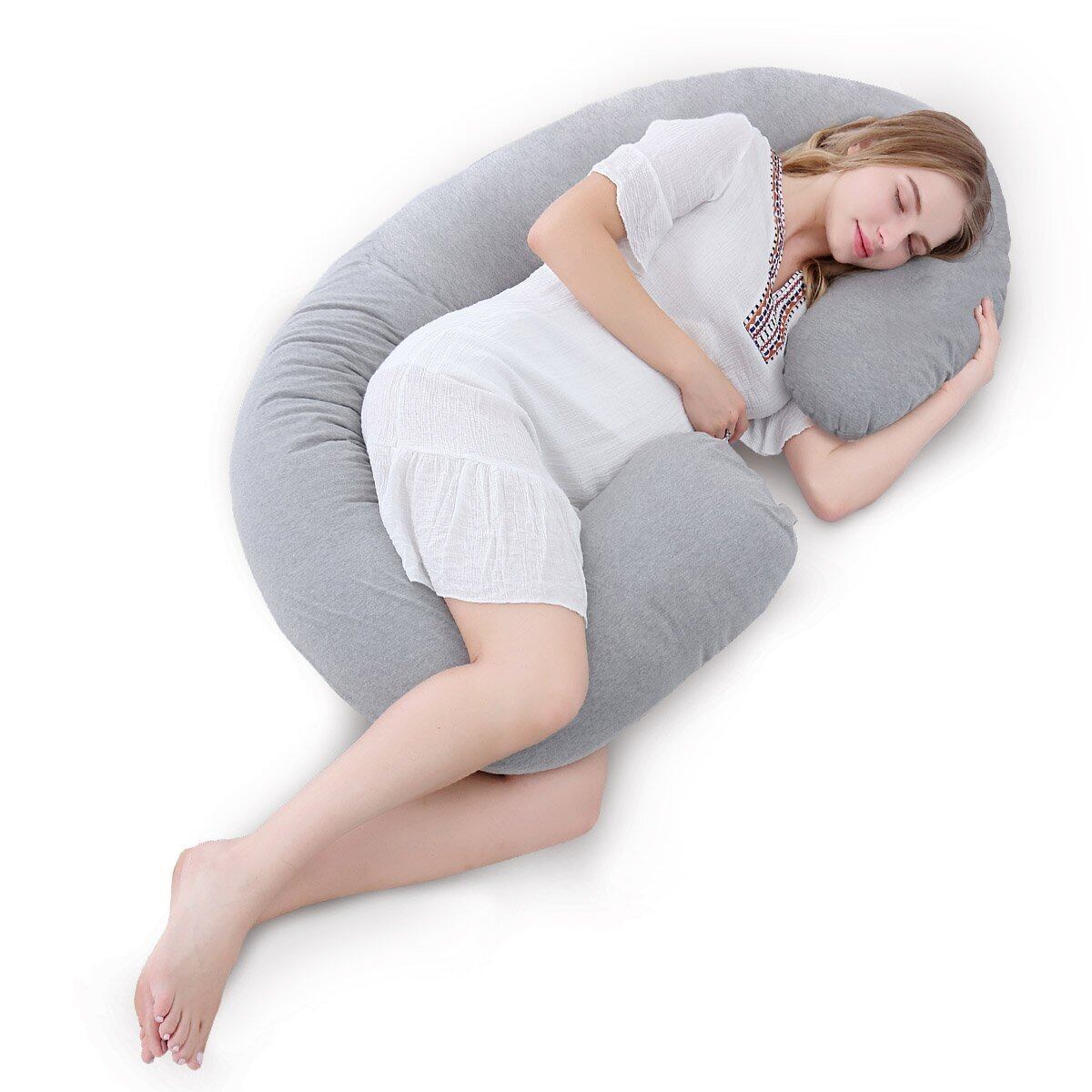 Meiz 抱き枕 妊婦・マター向け 腰・背中・膝サポート 洗えるジャージーカバー付き マタニティ・産後ケア・在宅ワーク対応 逆流性食道炎対策 快眠姿勢 出産祝い C型 グレー