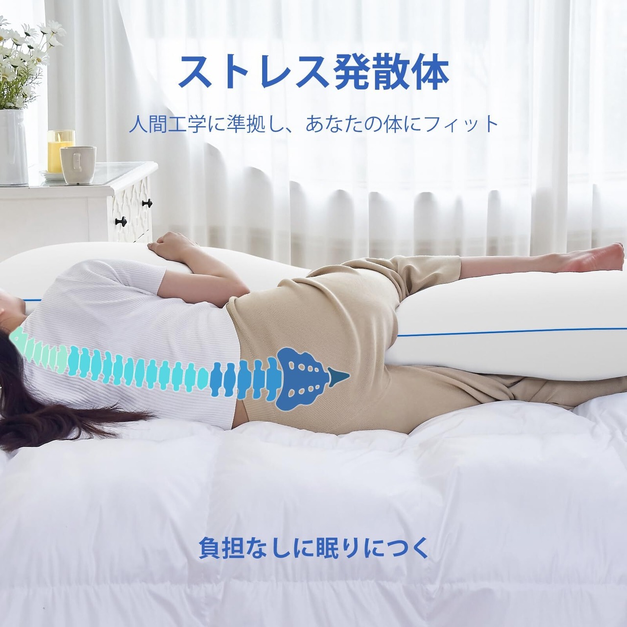 【160×50cmの大型抱き枕】安眠・横向き寝に最適!高密度3D粒綿を採用した等身大サイズ(160×50cm)で、横向き寝時の腰や肩の負担を軽減。ふわふわの肌触りと適度な弾力が、安定した快眠をサポートします。