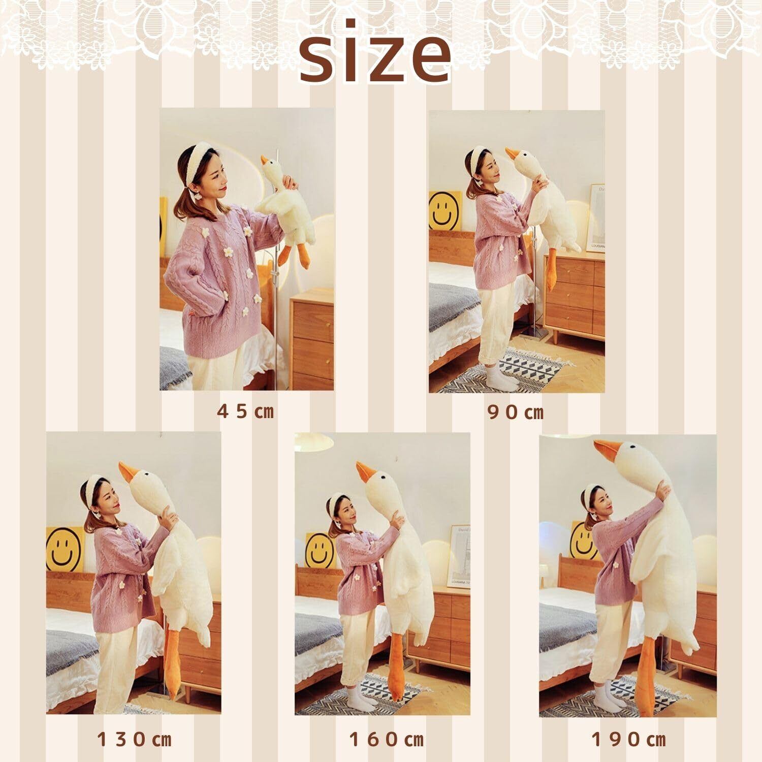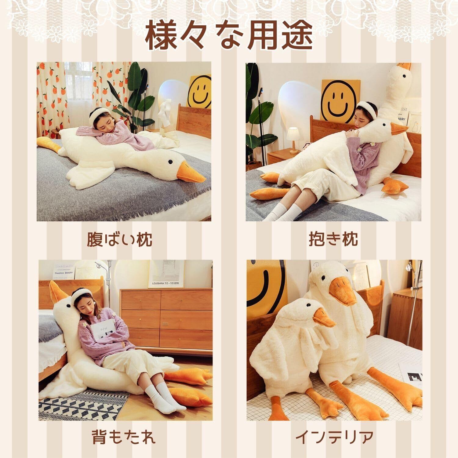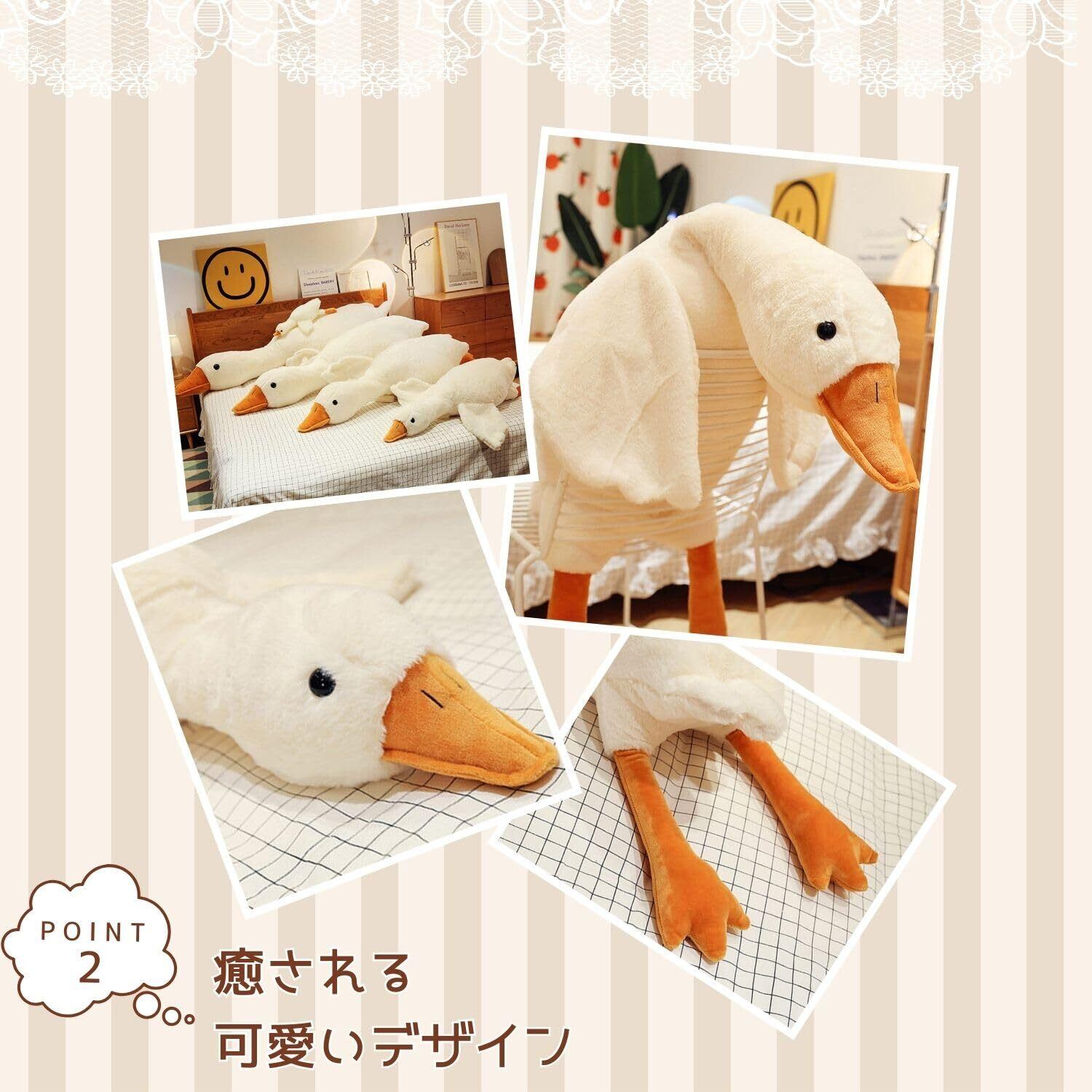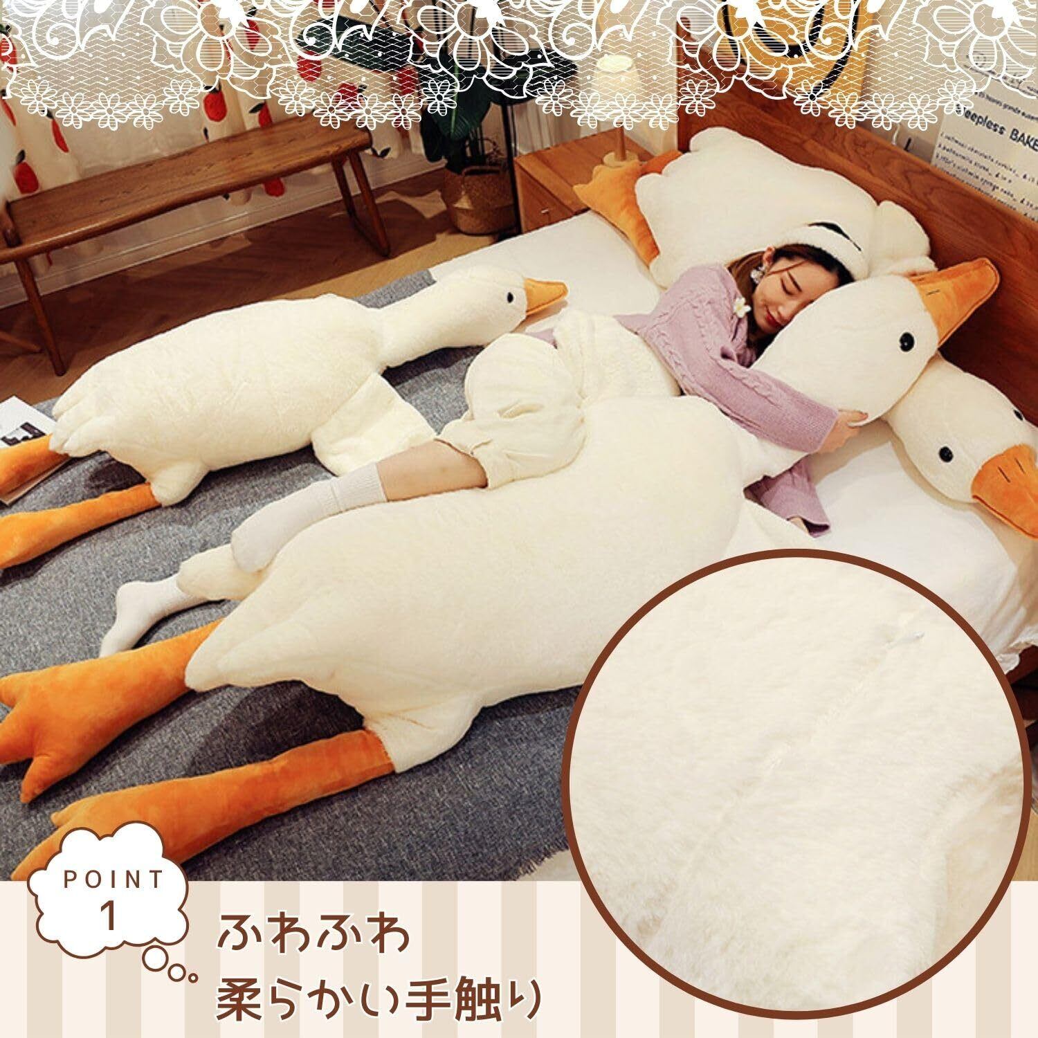 【新着商品】EU SOU ガチョウ 抱き枕 クッション ロングクッション アヒル 白鳥 動物 特大 ぬいぐるみ 腹ばい枕 添い寝 (130cm)