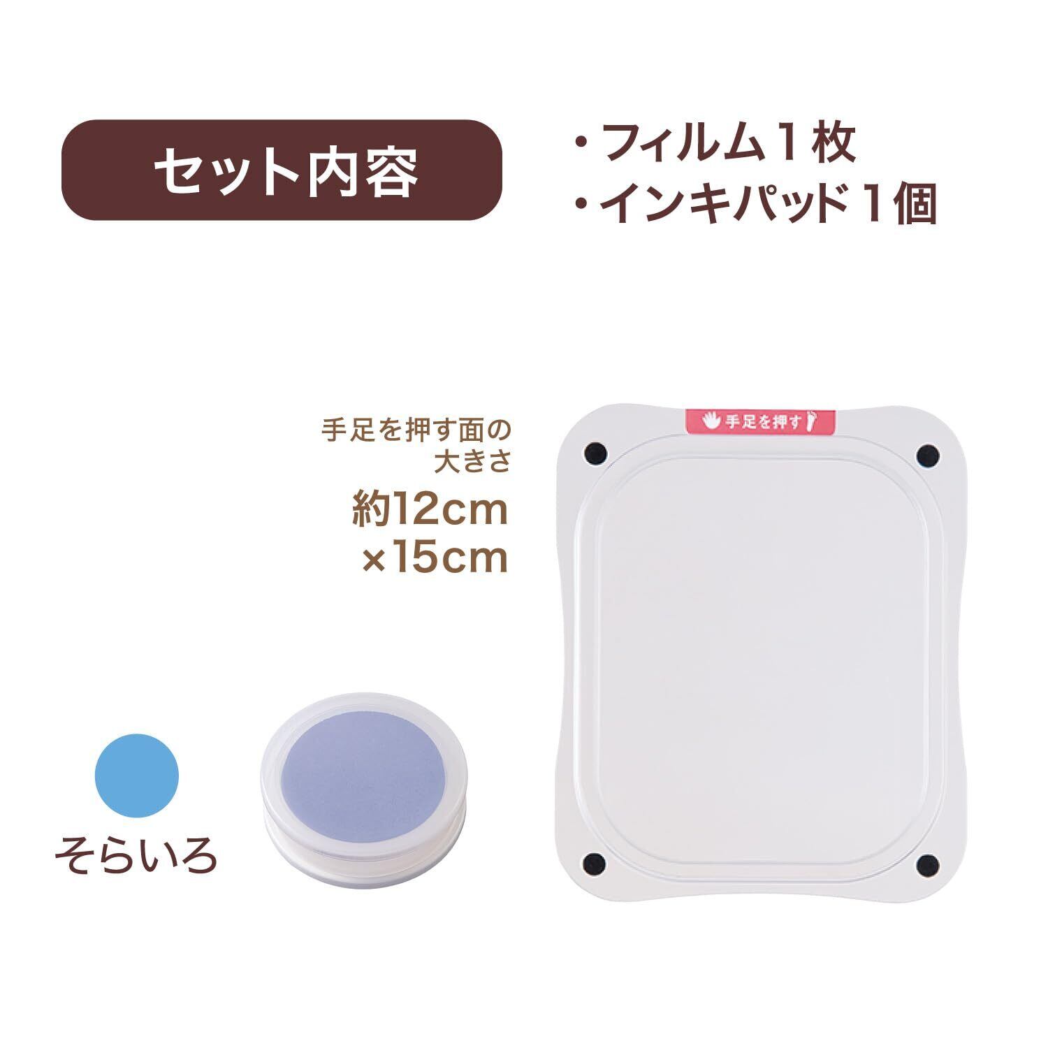 【セット内容】フィルム1枚、インキパッド(そらいろ)1個 【手足を押す面の大きさ】約12cm×15cm