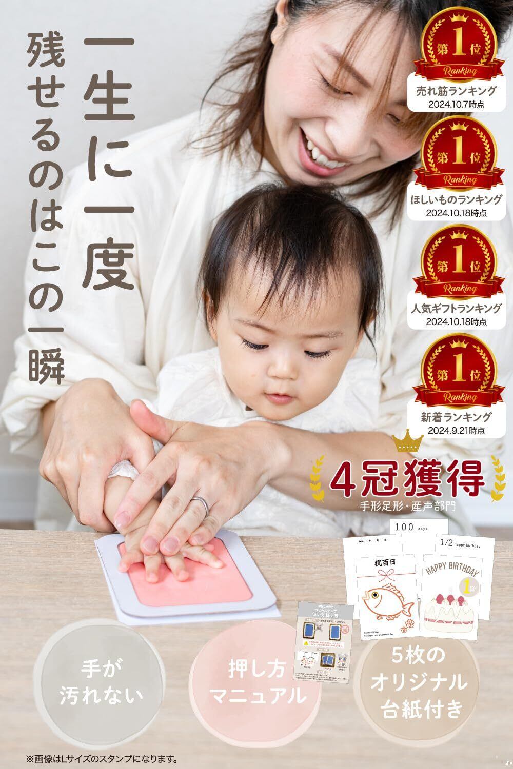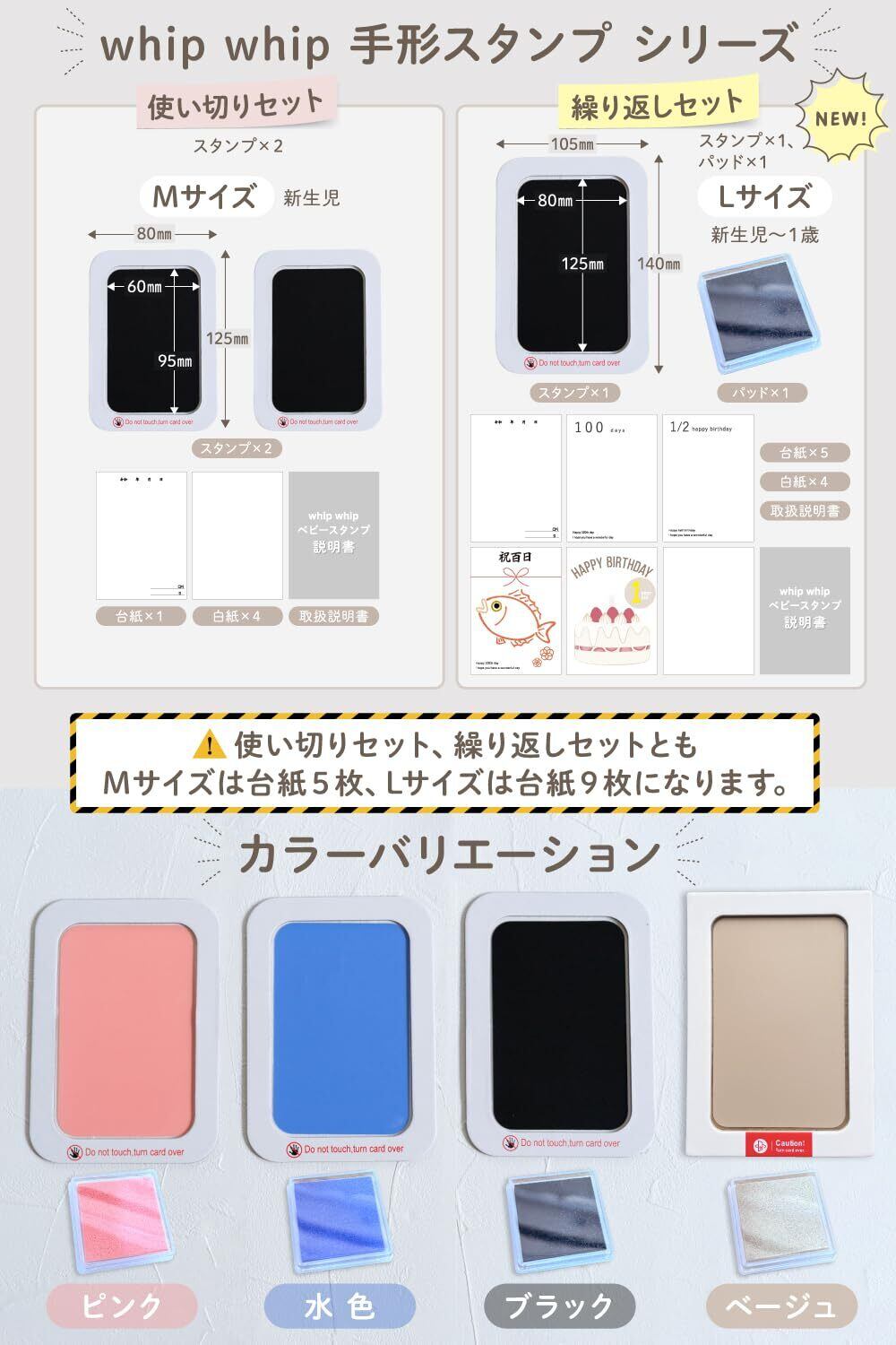 whip whipオリジナルの台紙5枚がセットに。 新生児から1/2バースデーにもお使い頂けるように台紙を工夫し作成致しました。 今しか残せない思い出だから、いつまでも見える形に。見る度ほっこり思い出す。そんな思い出づくりのお手伝いができましたら嬉しいです。※本商品は使い切りタイプになります。同じヶ所にて2回目スタンプを押す場合、色合いが薄くなります。