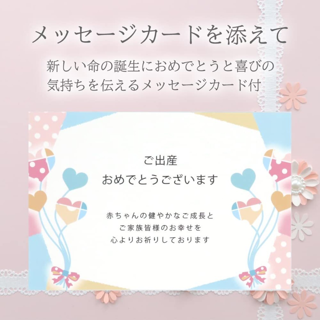 のし・包装加工済み、出産祝いメッセージカード・お渡し用手提げ袋付き