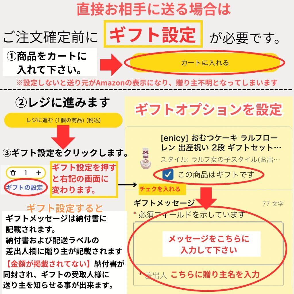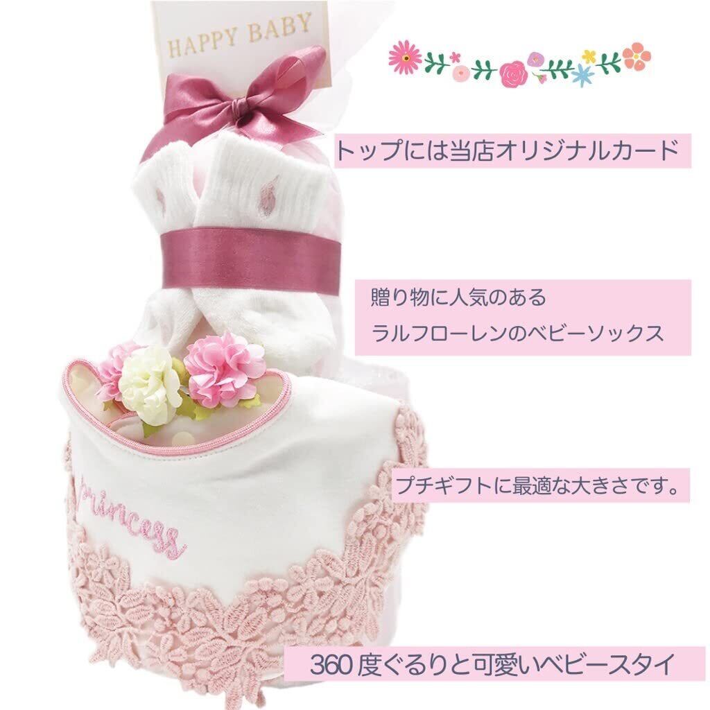 [enicy] おむつケーキ ラルフローレン 出産祝い 2段 ギフトセット (ラルフ女の子スタイル,お出かけスタイ おむつSサイズ,パンパース13枚)