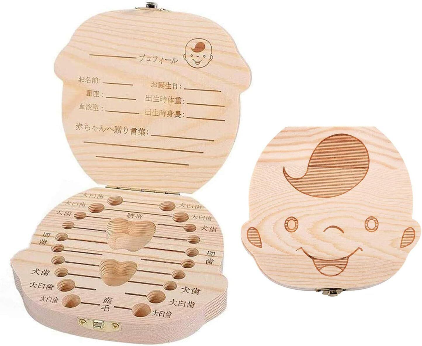 【特価セール】サムコス 乳歯ケース 木製 乳歯入れ 日本語版 男の子/女の子 ベビートゥース 子供 歯 保管 収納 記念な乳歯 記念品 (男の子)