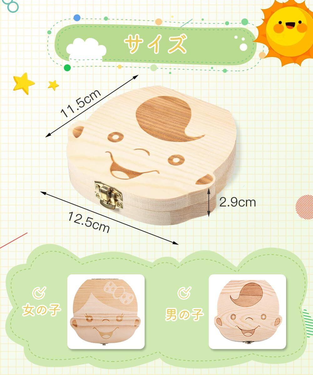 サムコス 乳歯ケース 木製 乳歯入れ 日本語版 男の子/女の子 ベビートゥース 子供 歯 保管 収納 記念な乳歯 記念品 (男の子)