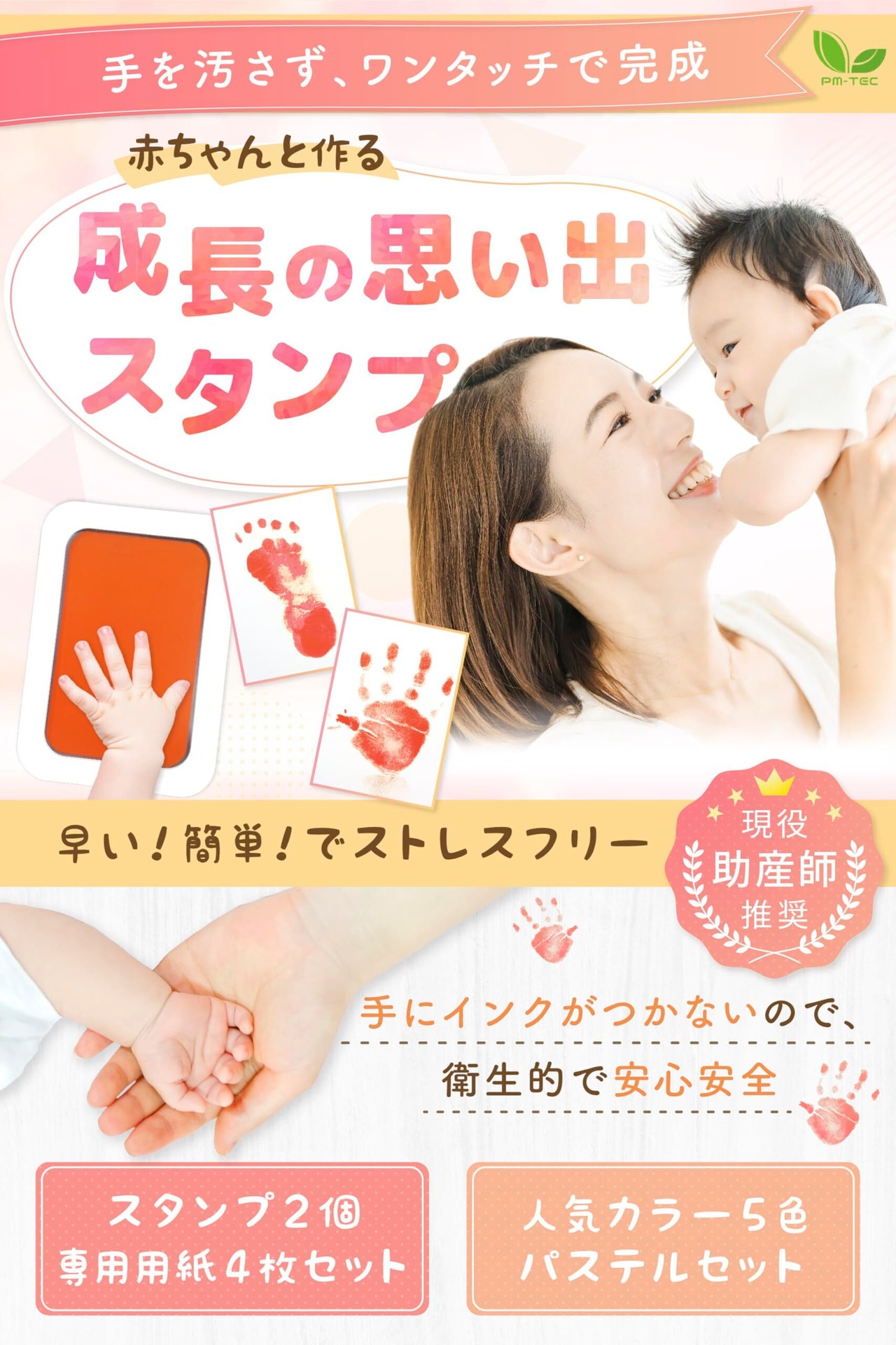 【手足が汚れない】フィルム部分に手や足を押しつけるだけで、手足を汚すことなく手形・足形が取れます。ペットにも使用できますが、インクフィルムは薄いため、爪などで破らないようご注意ください。 ※個人差がありますので、必ず手足のサイズを確認してご購入下さい。