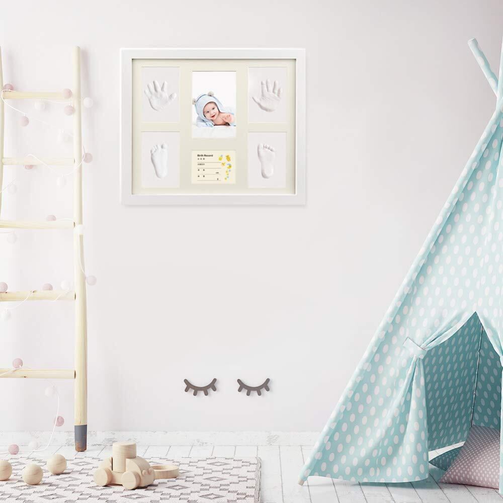 iSiLER ベビーフレーム 手形 足形 フォトフレーム 置き掛け兼用 無毒で安全 赤ちゃん 出産祝い 内祝い ベビー記念品 ホワイト 33.3 x 28.2 x 2.4 cm