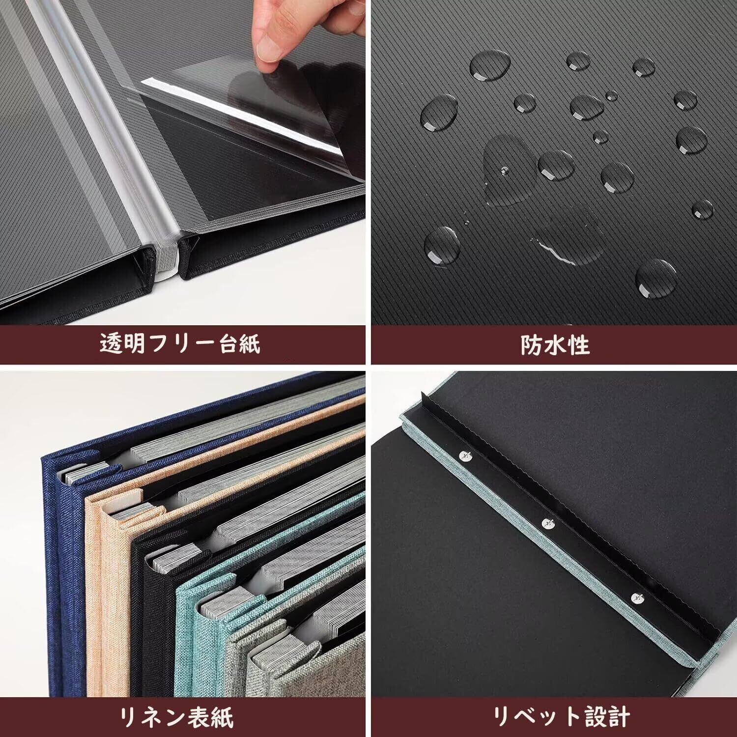 【新着商品】Raoendis アルバム 貼るタイプ 黒台紙 20枚40ページ L判サイズ200枚収納 DIY L/KG/2L/A4写真収納 手作り フォトアルバム フリー台紙 フォトブック リネン 赤ちゃん 結婚祝い 出産祝い 子供 ベビー 記念日 結婚式 簡単 収納 可愛い