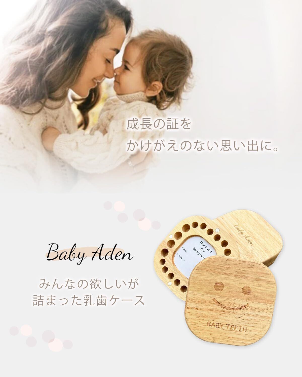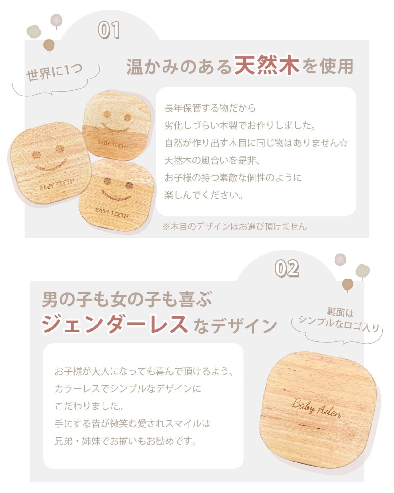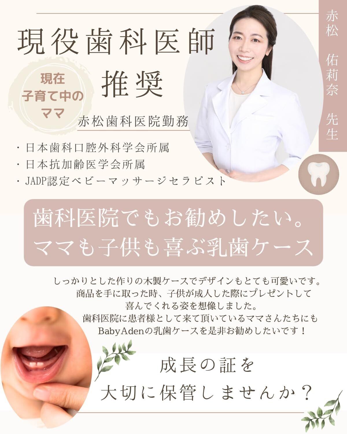 【歯科医師推薦 日本企画】 乳歯ケース 女の子 男の子 木製 乳歯入れ 収納ケース&ギフトBOX付 BabyAden BA4 (tree)