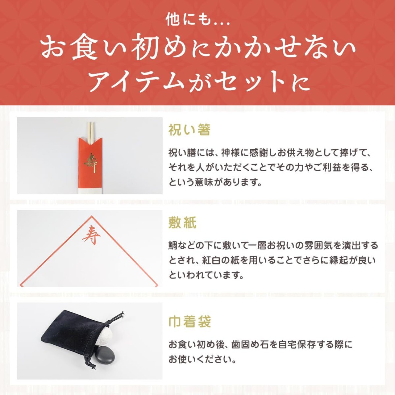 お子様の健やかな成長を願う大事な儀式にかかせないセットです。