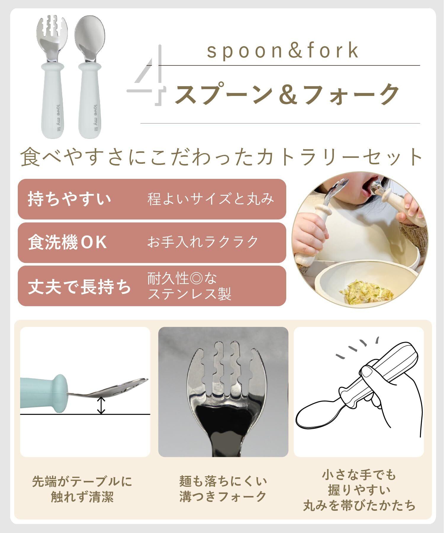 ●スプーン&フォーク:小さな手でも持ちやすく、麺などもすくいやすいカトラリーセット。