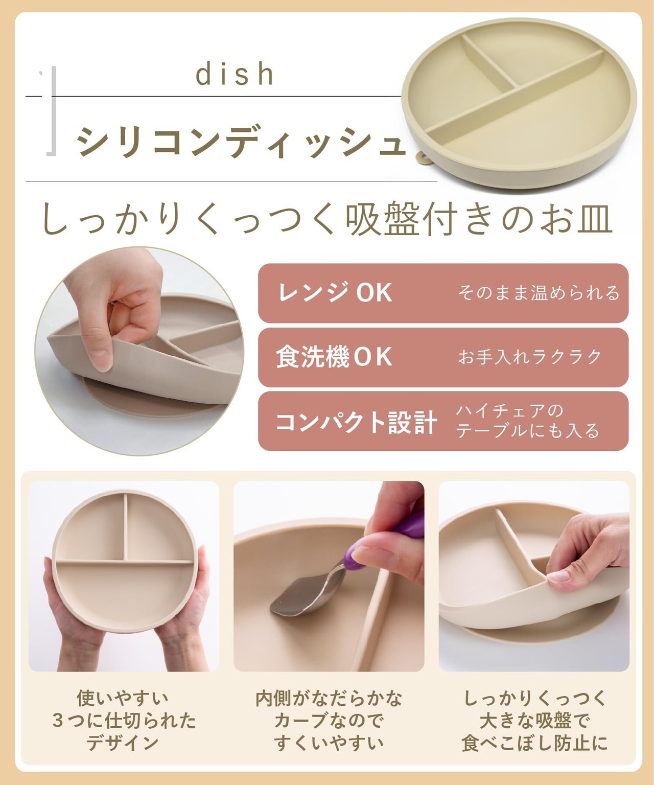 ●シリコンディッシュ:しっかりくっつく吸盤付きのお皿