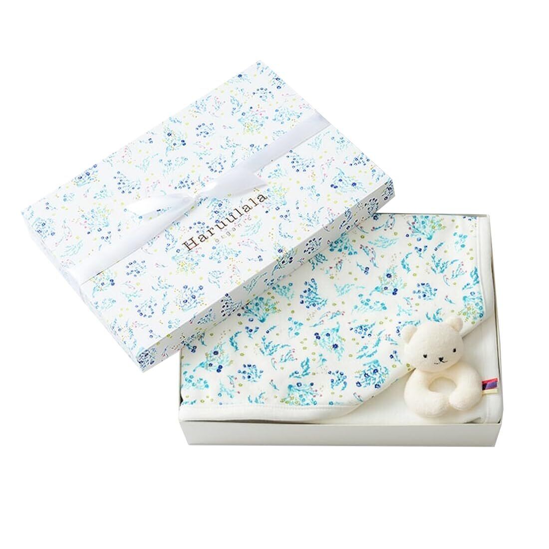 【在庫処分】ハルウララ 出産祝い 女の子 男の子 オーガニックコットン ブランケット (ブランケット +ラトル+ギフトボックス) 0歳〜3歳 (ヒカリエ)