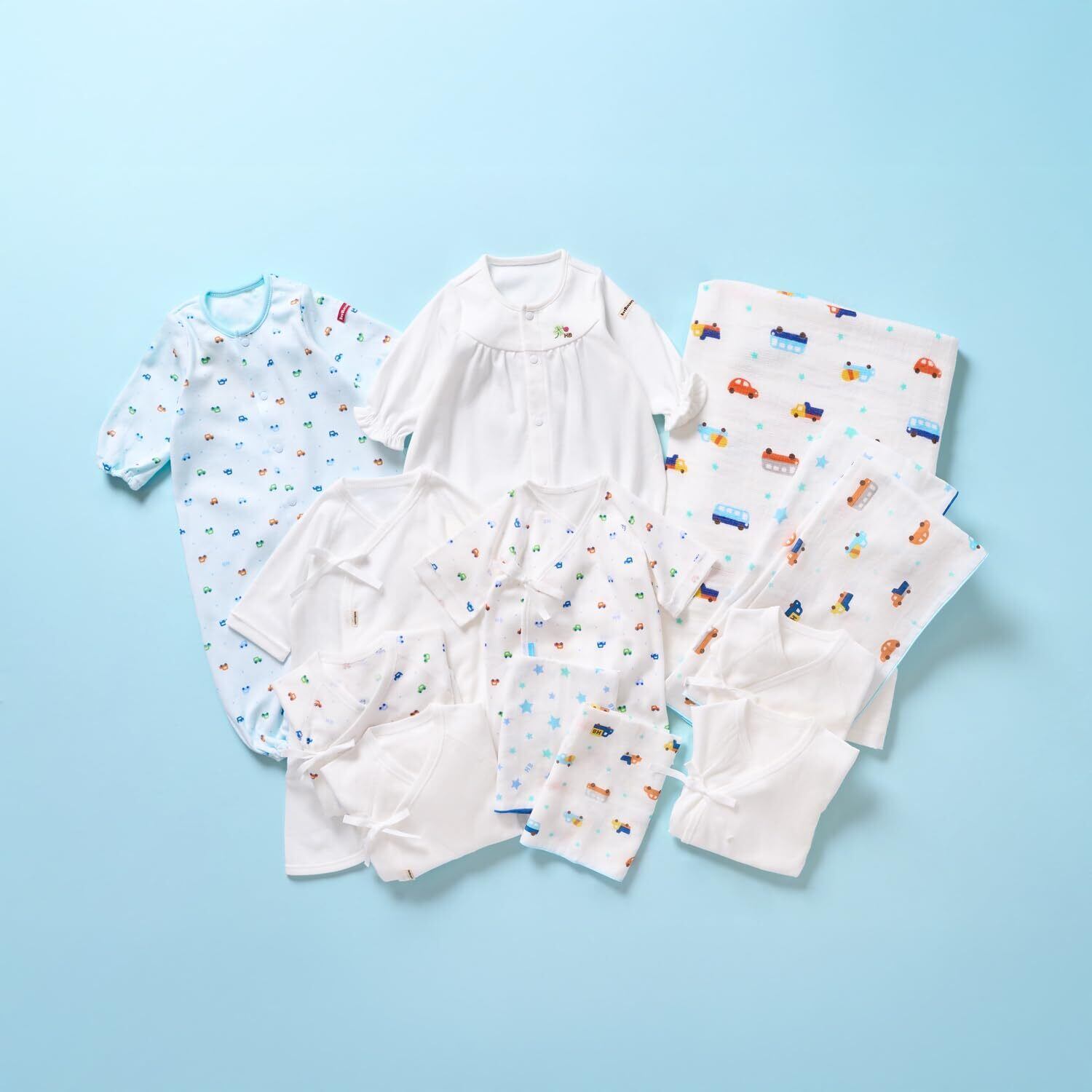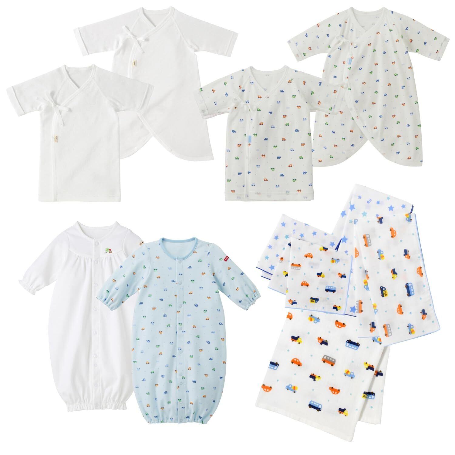 <セット内容> ・短肌着(無地フライス:50cm)×2枚【型番:70-2114-496】 ・短肌着(総柄フライス:50cm)×1枚【型番:70-2116-492】 ・コンビ肌着(無地フライス:50cm)×2枚【型番:70-2308-499】 ・コンビ肌着(総柄フライス:50cm)×1枚【型番:70-2309-492】 ・ツーウェイオール(無地スムース:50-60cm)×1枚【型番:73-2602-970】 ・ツーウェイオール(総柄スムース:50-60cm)×1枚【型番:70-2612-570】 ・ガーゼハンカチセット2枚組×1セット【型番:76-8037-490】 ・ガーゼタオルセット2枚組×1セット【型番:76-8038-493】 ・ガーゼバスタオル×1枚【型番:76-8039-496】