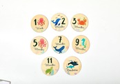 【新春セール】Promise Babe 月齢フォト ベビーマンスリーカード 8枚セット 海洋動物 ウッド 天然木材 ニューボーンフォト 写真道具 成長記録 新生児 赤ちゃん 出産祝い 収納箱なし
