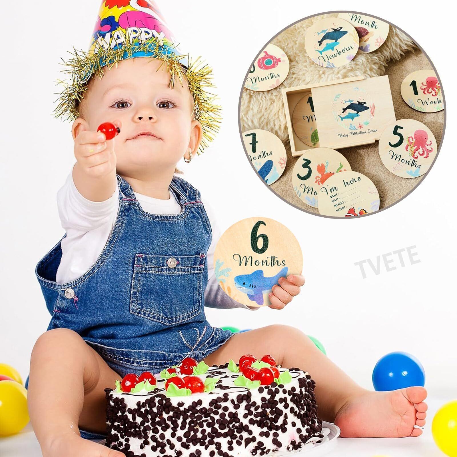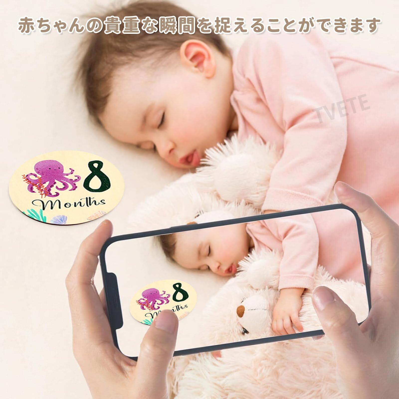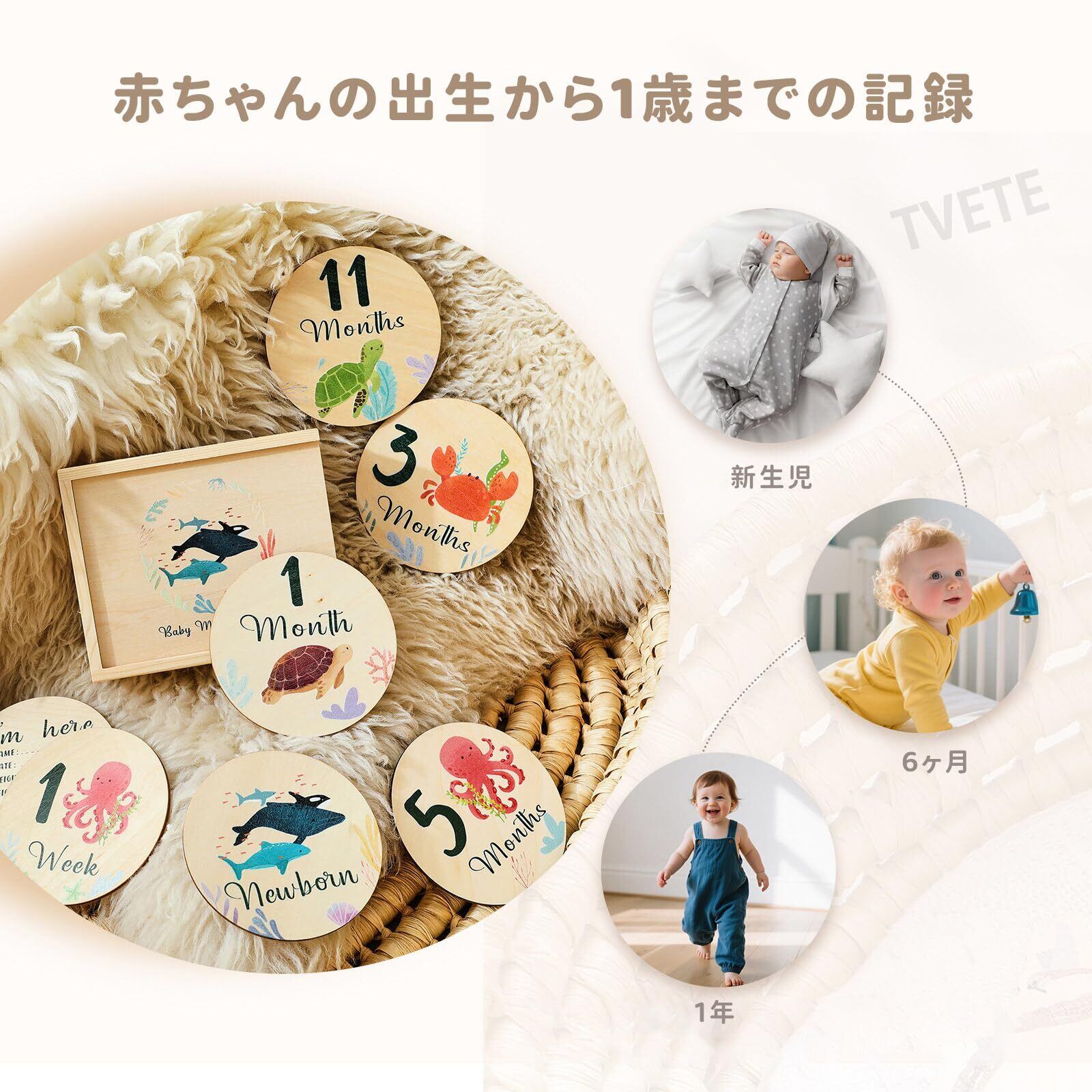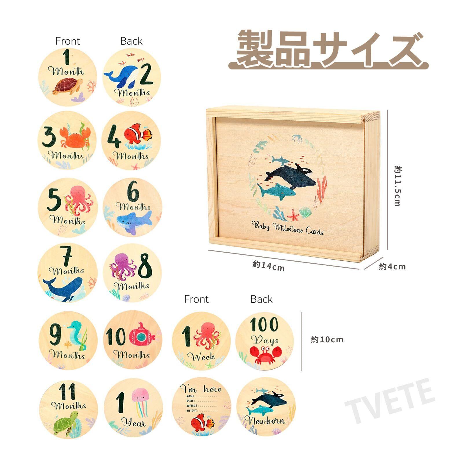TVETE マンスリーカード ベビー 月齢フォトカード ニューボーンフォト セット ベビーマンスリーカード 新生児 写真道具 天然木材 月齢グッズ ウッド ベビーカード 海洋動物 フォトプロップ 成長記録 カード 赤ちゃん 記念写真 育児グッズ 出産祝い ギフト 新生児 プレゼント 手作り 木製 月齢カード 8枚セット ニューボーン フォトプロップ 木箱付き
