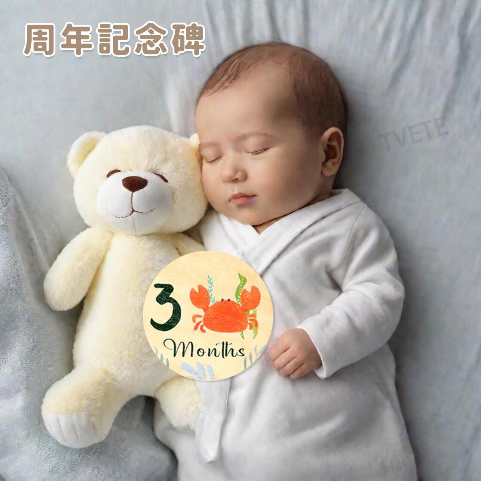 【海洋動物デザインで楽しい撮影】ニューボーンフォトや記念写真のバリエーションが広がり、木製月齢カードの温もりある質感が赤ちゃんの柔らかい雰囲気を引き立てます。マンスリーカード ベビーを天然木材製のフォトプロップに配置し、ベビーの月齢フォトを毎月簡単に撮影。妊娠期から出産後までの大切な瞬間を視覚化できるベビーマンスリーカードです。