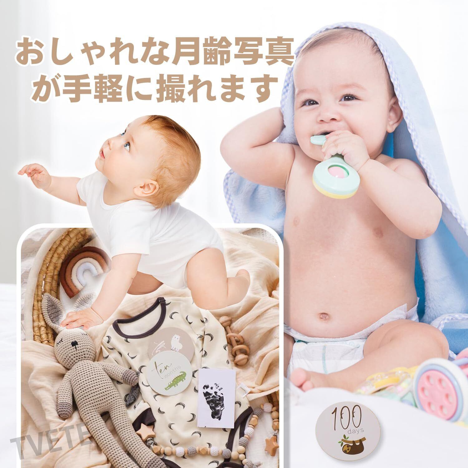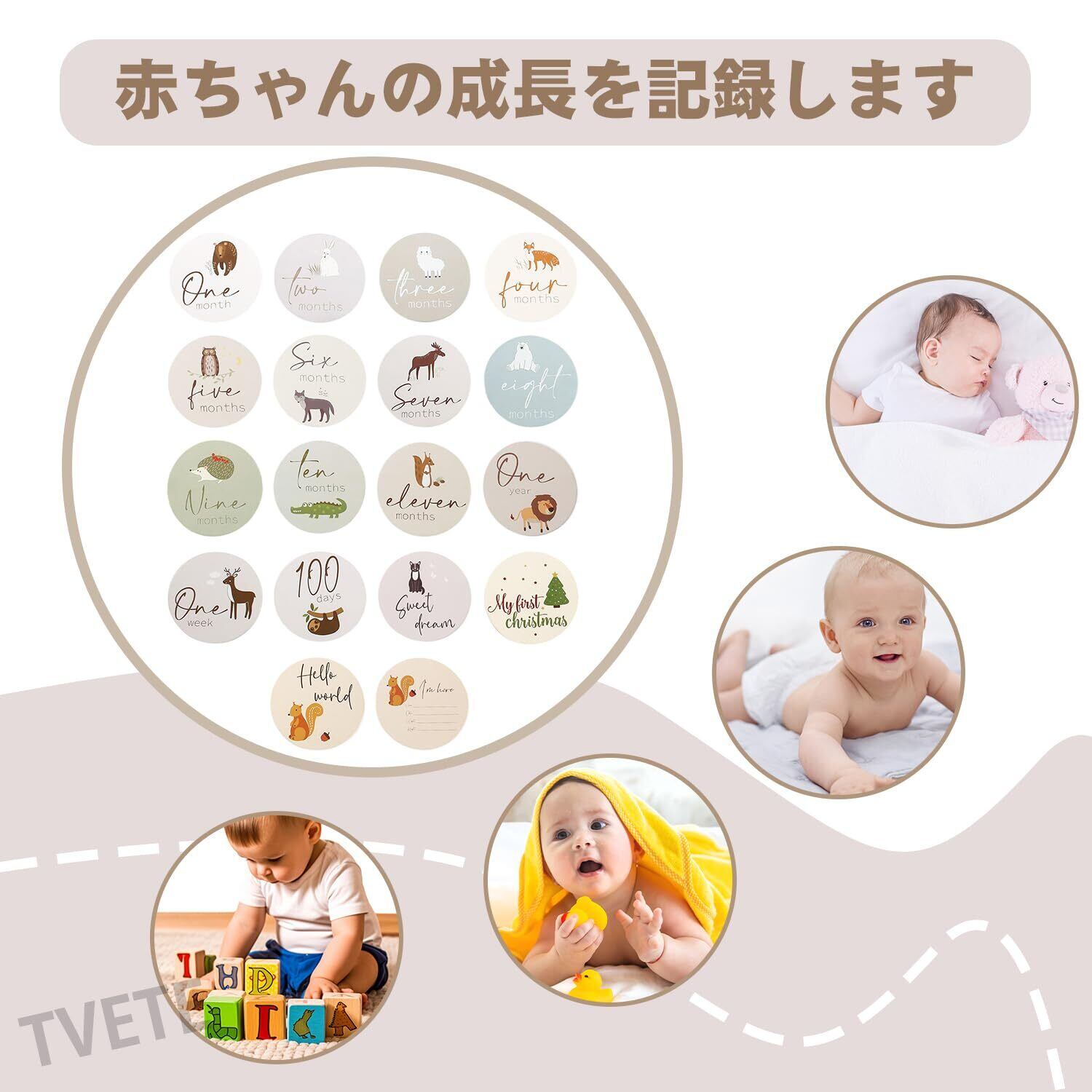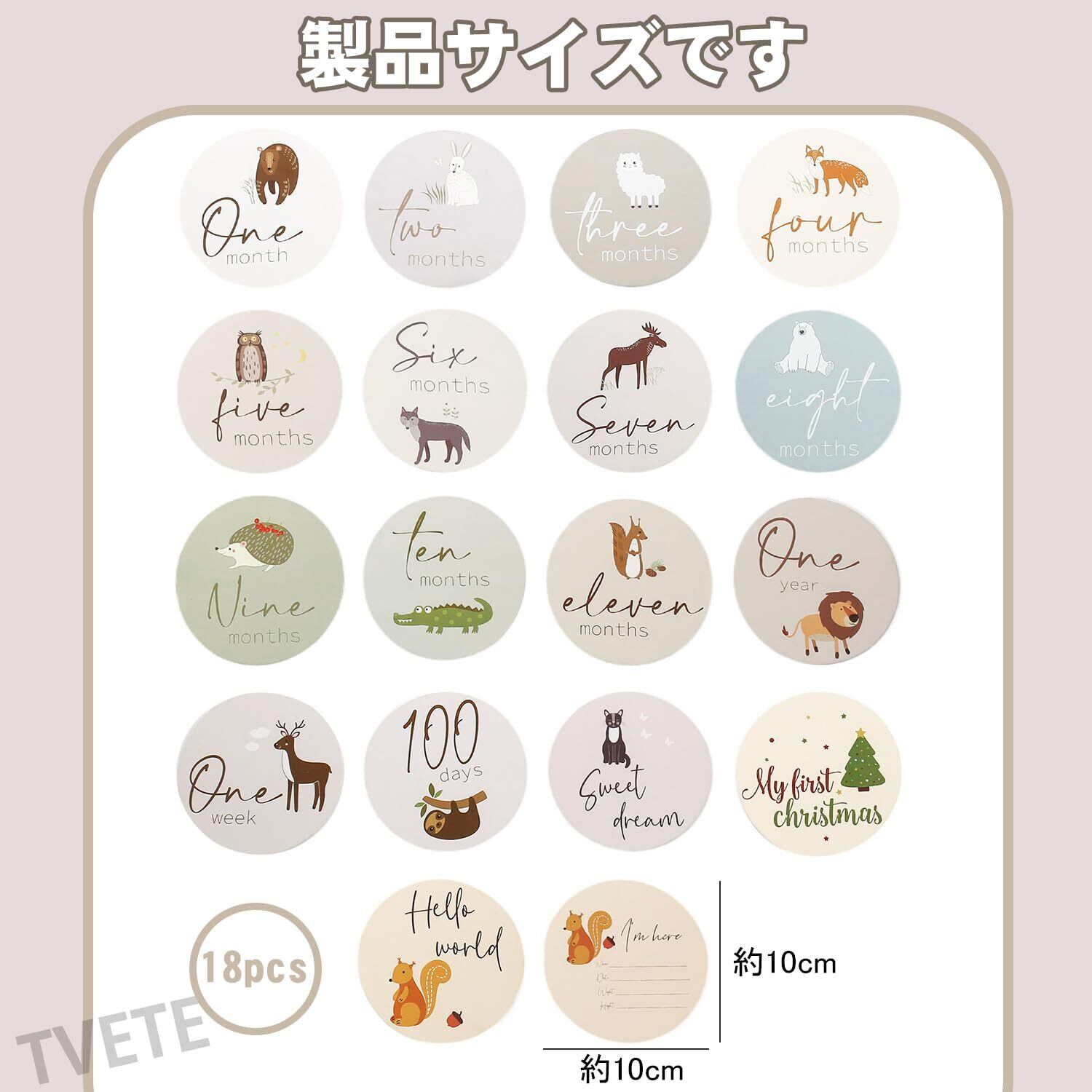 【新着商品】TVETE 月齢フォト 月齢フォトグッズ 【18枚セット】動物のテーマ かわいい漫画 アニマルプリント 新生児 ベビー 成長の記録 記念写真 周年 出産祝い カメラツール