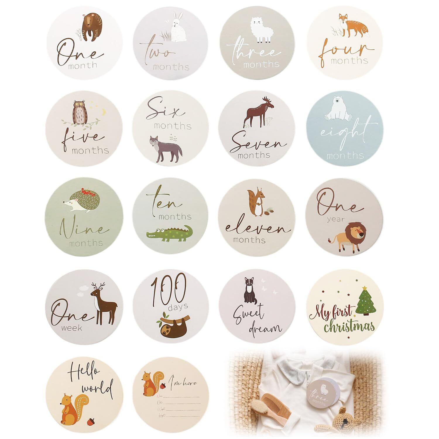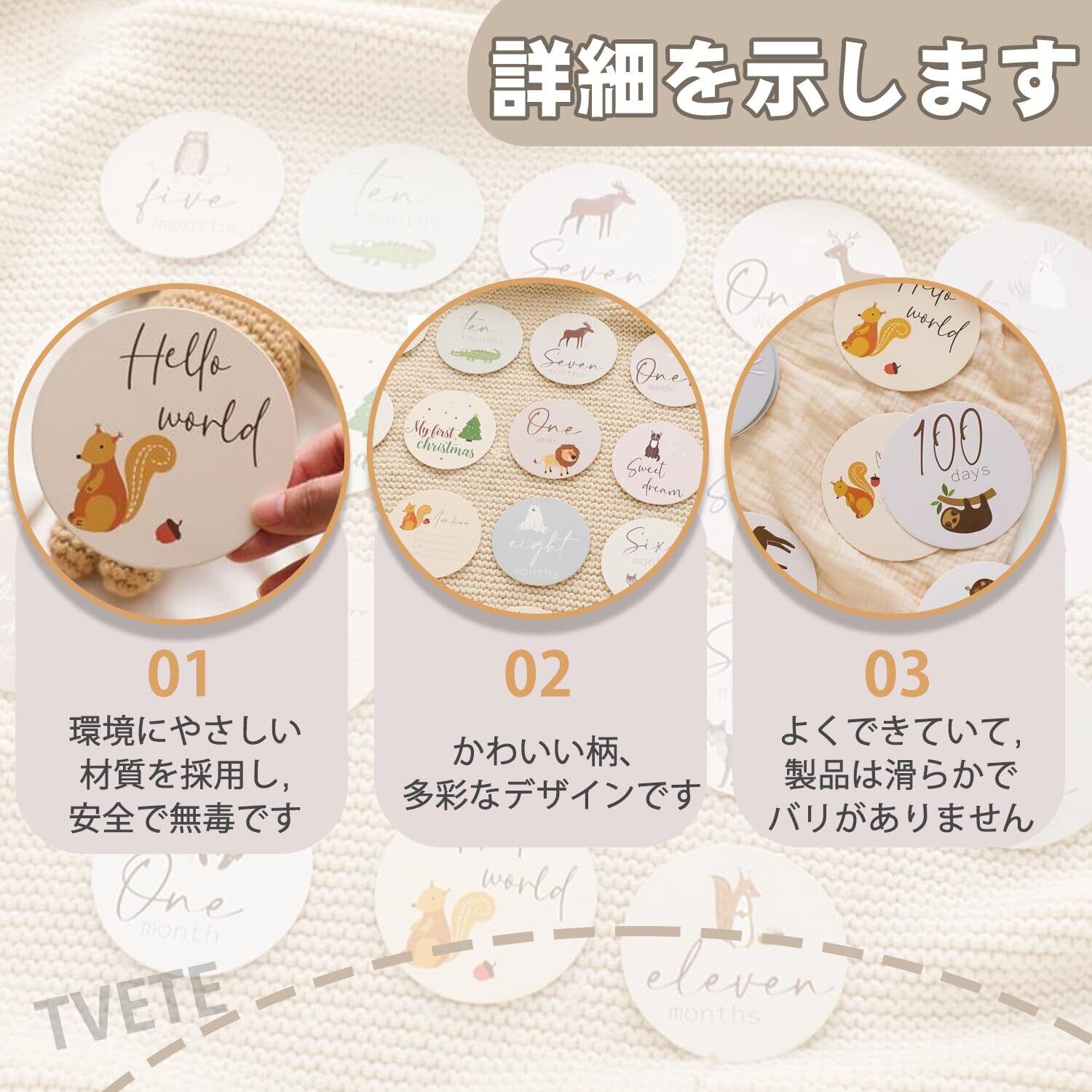 TVETE 月齢フォト 月齢フォトグッズ 【18枚セット】動物のテーマ かわいい漫画 アニマルプリント 新生児 ベビー 成長の記録 記念写真 周年 出産祝い カメラツール